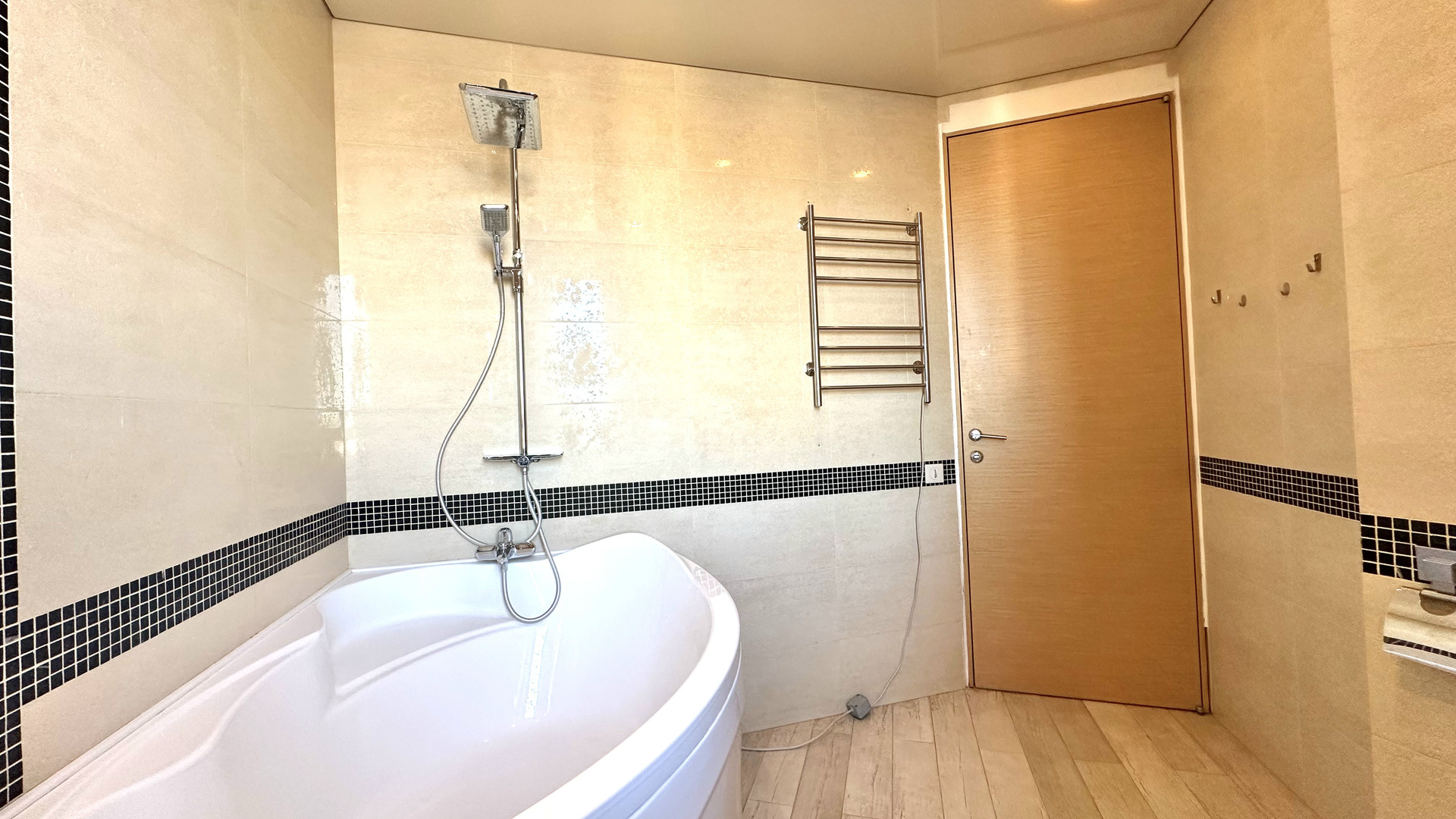 Два санузла, большая ванна, кладовая комната со стиральной и сушильной машинами и бойлером на 180 литров.