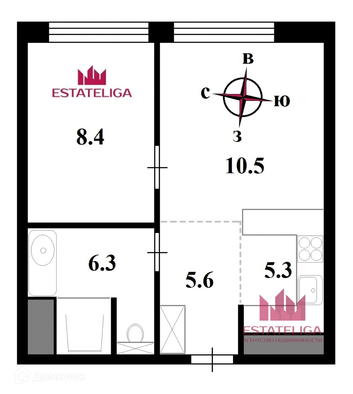 Общая площадь 36.1 м2