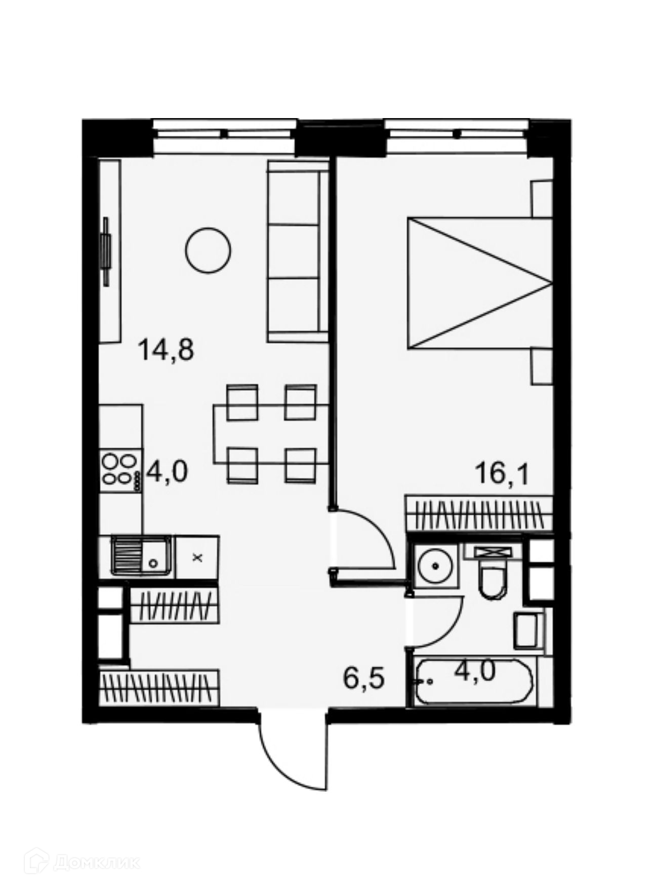 Жилая площадь 16.1 м2