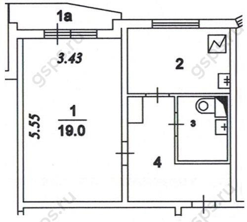 Жилая площадь 19 м2