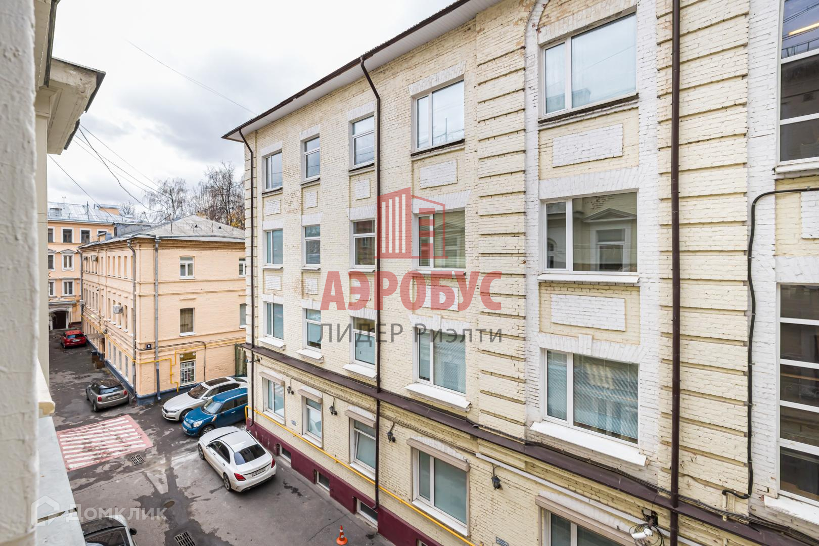Окна выходят в тихий зеленый двор.