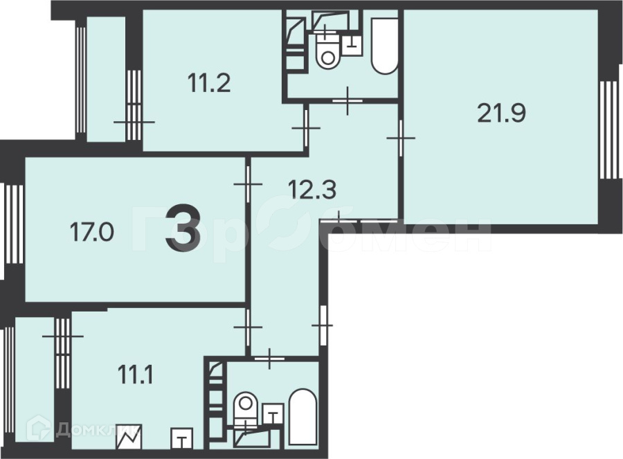 Кухня просторная 11,1м2, комнаты 11,2м2+21,9м2+17м2, 2 сан.узла, 2 лоджии, прихожая, коридор 12,3м2. Детские и спортивные площадки и территории для отдыха. В пешей доступности все для комфортного проживания: школы, д/сады, колледжи, магазины, поликлиники, медицинские центры, кафе и рестораны.