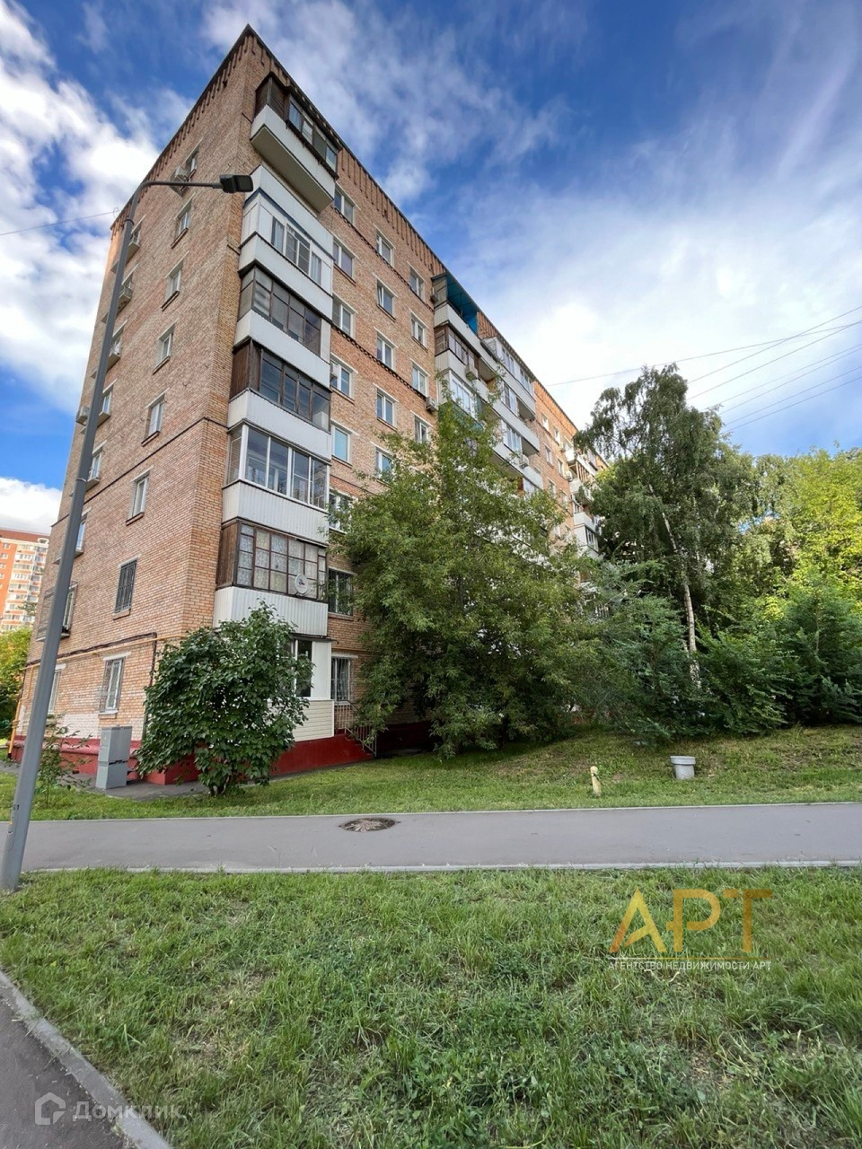 О ДОМЕ: дом на второй линии от дороги, в окружении большого количества зелени, въезд под шлагбаум, много места для парковки, во дворе детская и спортивная площадки, детский сад.