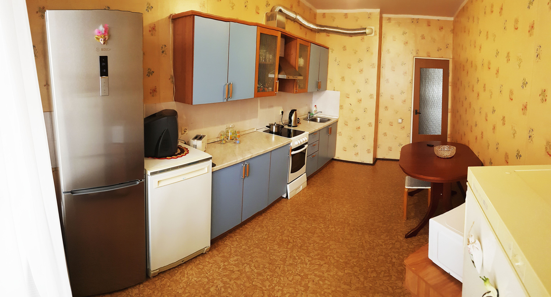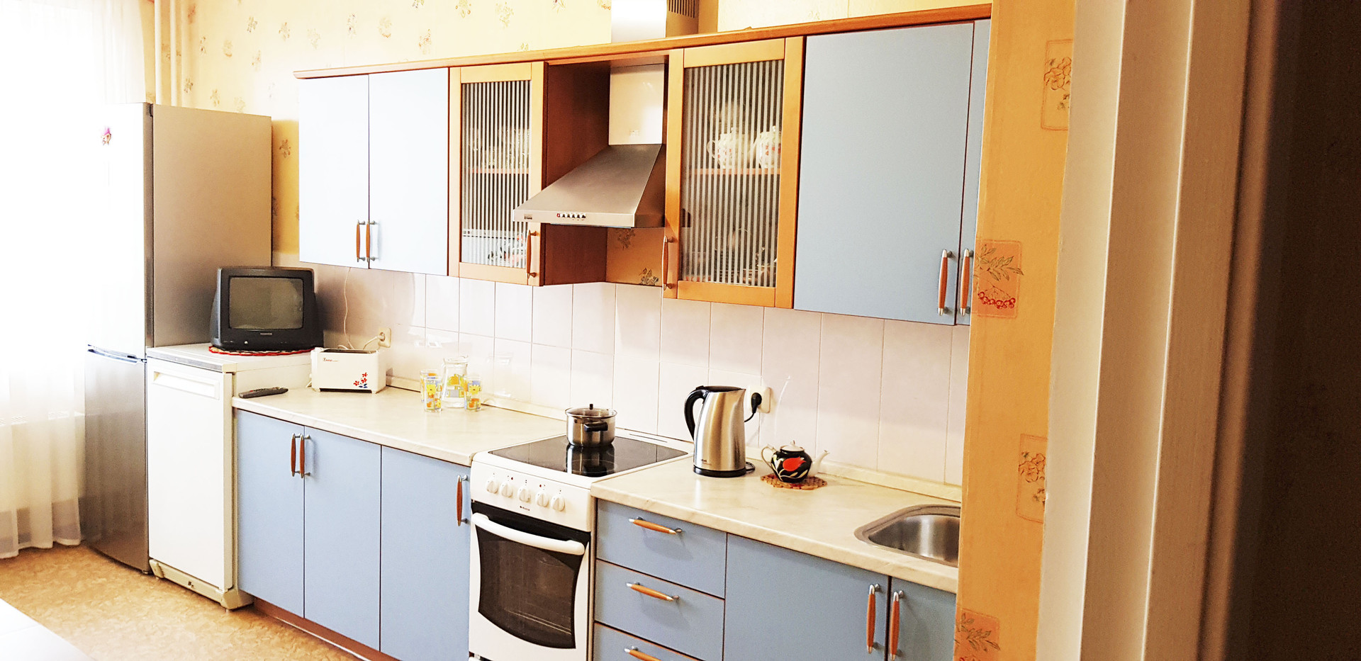 88.7 кв.м, жилая площадь: 50.1 кв.м (изолированные комнаты 19.7-17.7-12.6), кухня: 13.9 кв.м, коридор: 20.9 кв.м, санузел раздельный, лоджия имеется на кухне и в комнате 17.7 кв.м, во всей квартире установлены стеклопакеты, встроенная кухня с техникой и вытяжкой, шкаф купе, домофон, интернет, квартира очень чистая, счетчики на воду, металлическая дверь, тамбур, чистый подъезд, лифт пассажирский и грузовой, пандус для колясок, детские площадки для детей разного возраста, очень хорошая транспортная доступность, садики и школы, скверы, торговые центры и магазины, Храм, поликлиники, кинотеатр, очень развитая инфраструктура.