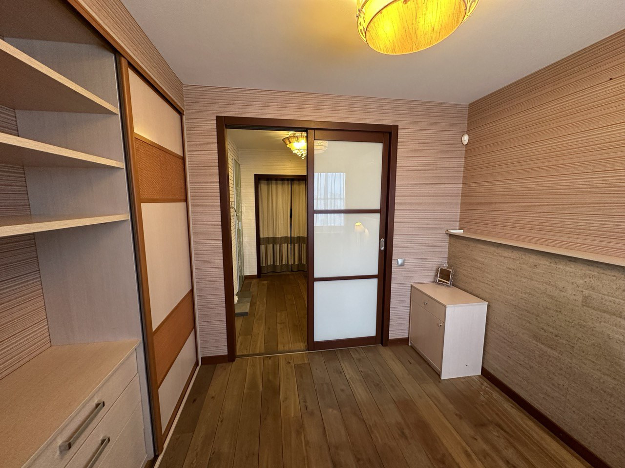 В квартире выполнен качественный ремонт: на полу в комнатах натуральный паркет, в зоне кухни и прихожей керамогранит, установлены стеклопакеты Schuco, душевая кабина, водонагреватель, кондиционеры, встроенные шкафы в прихожей.