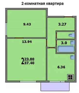 Общая площадь квартиры 40 кв.м.