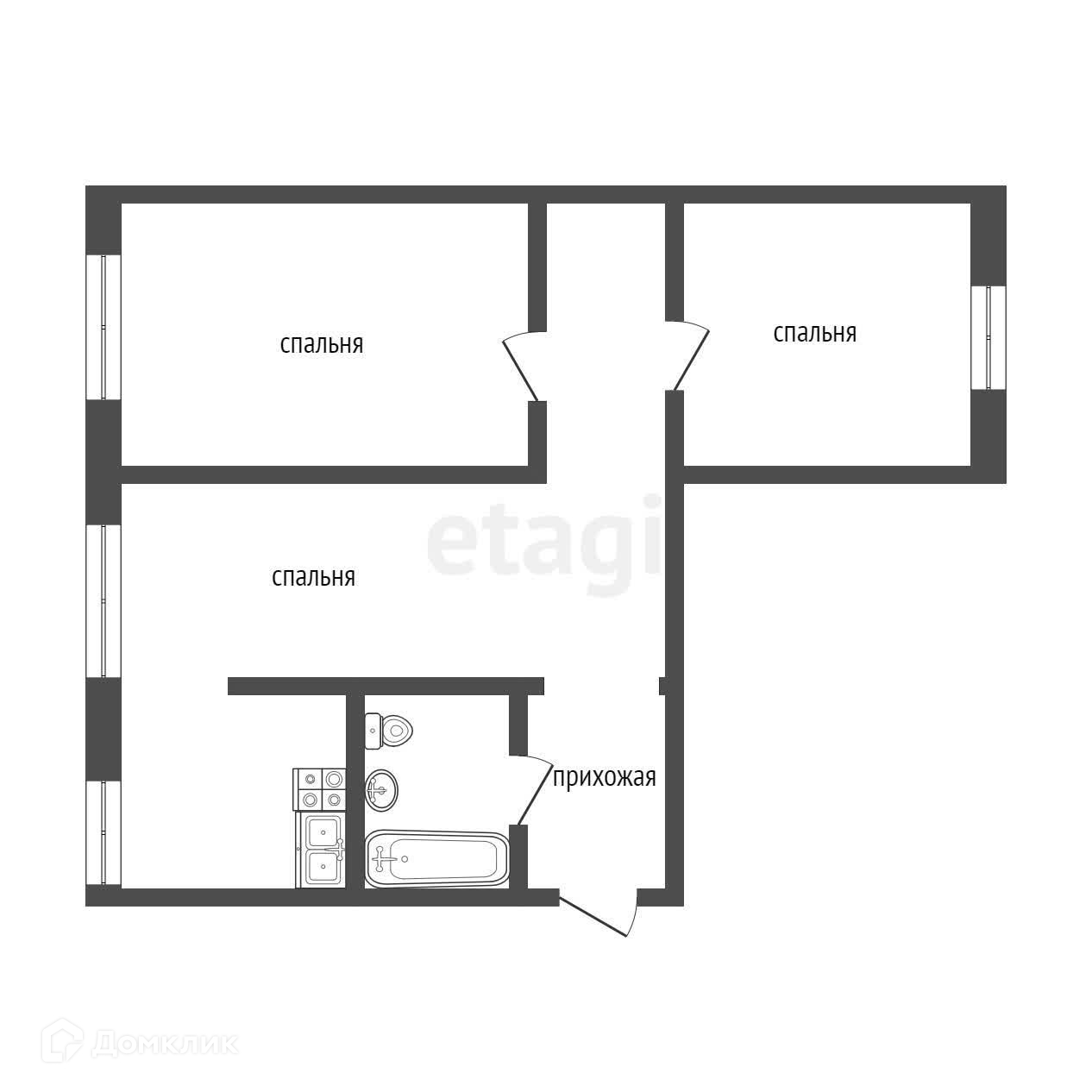 Общая площадь 55 м2