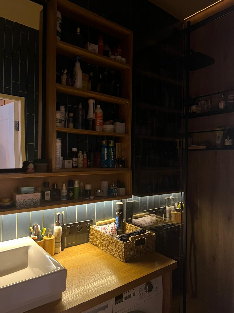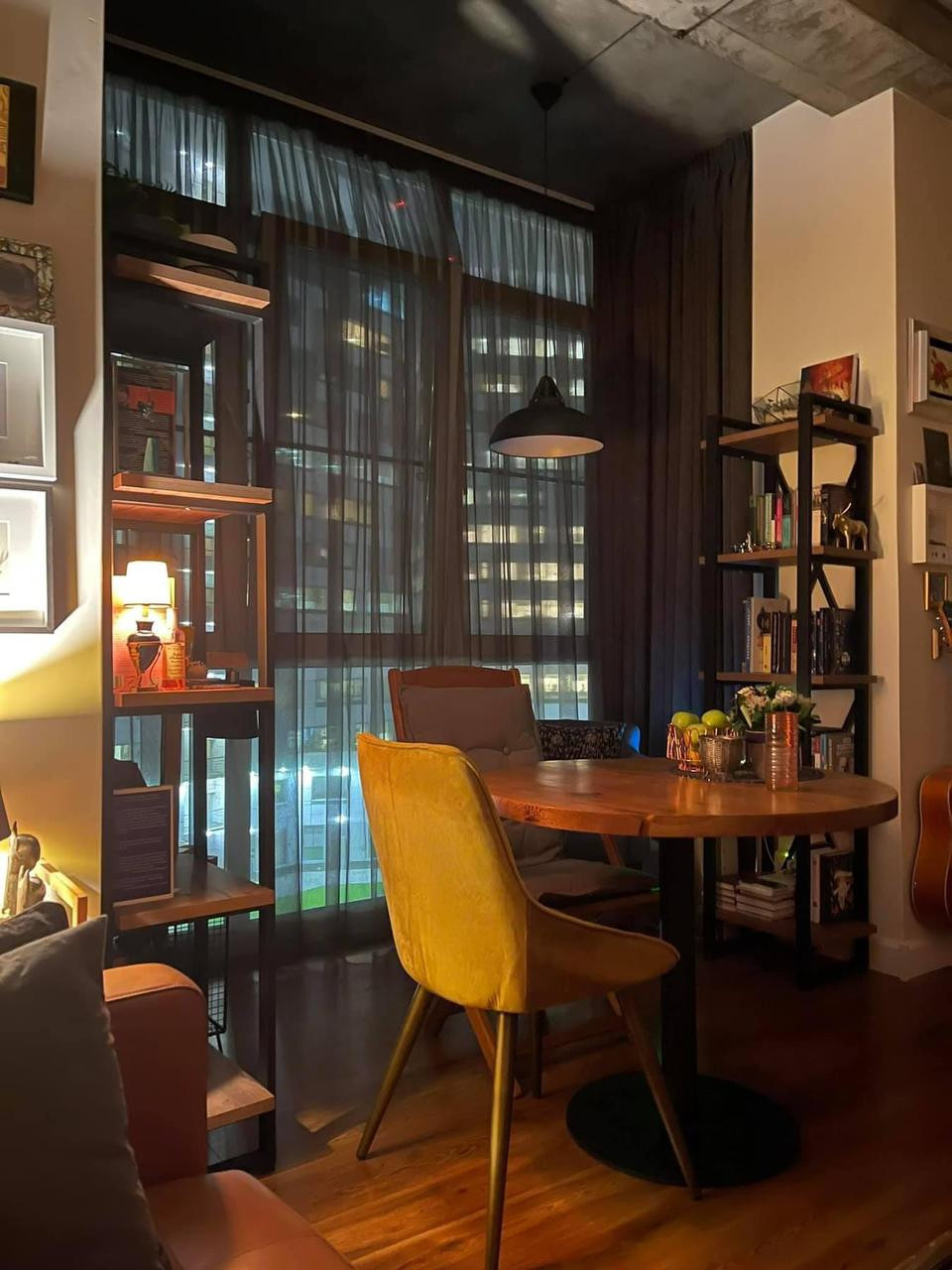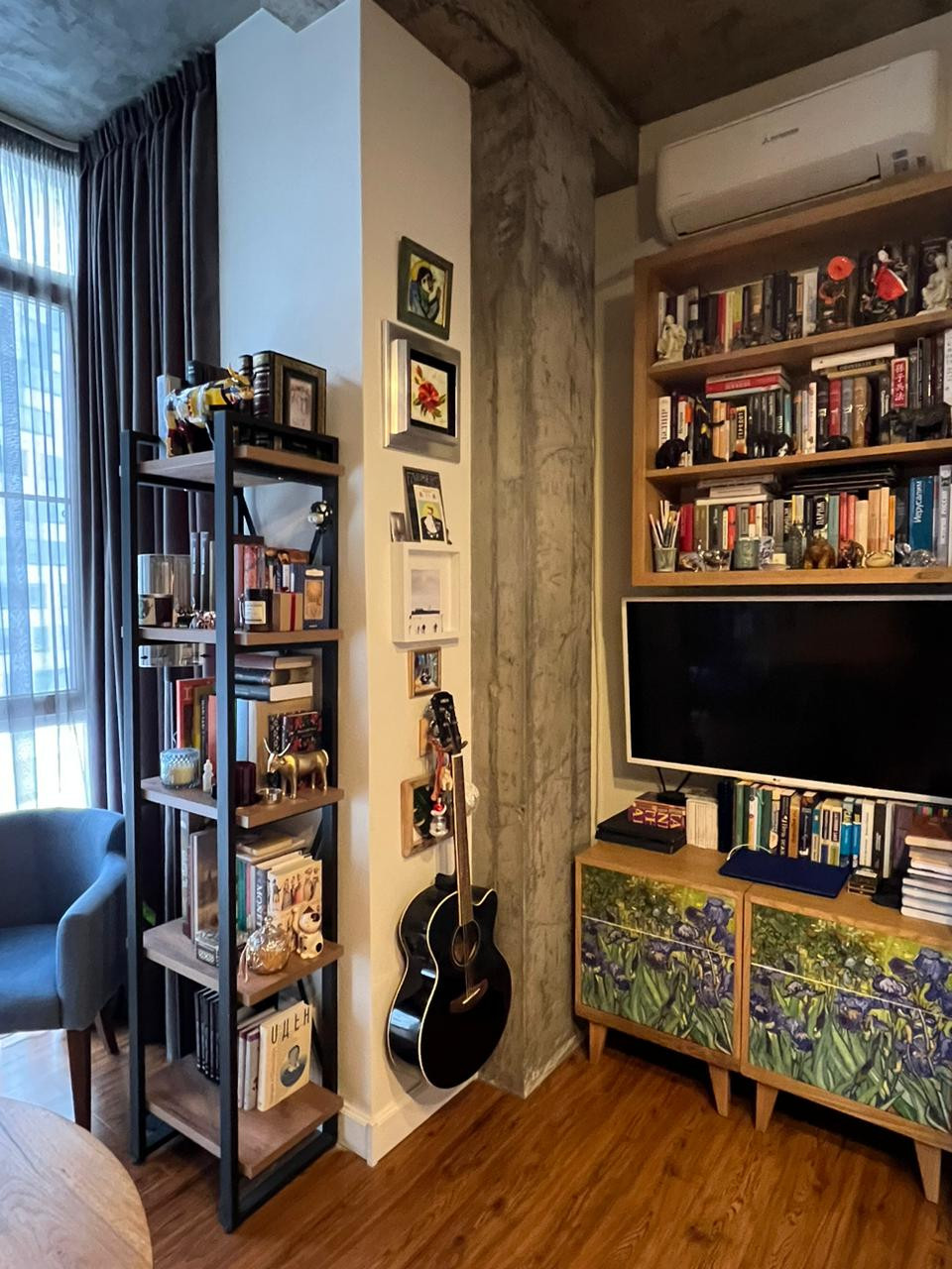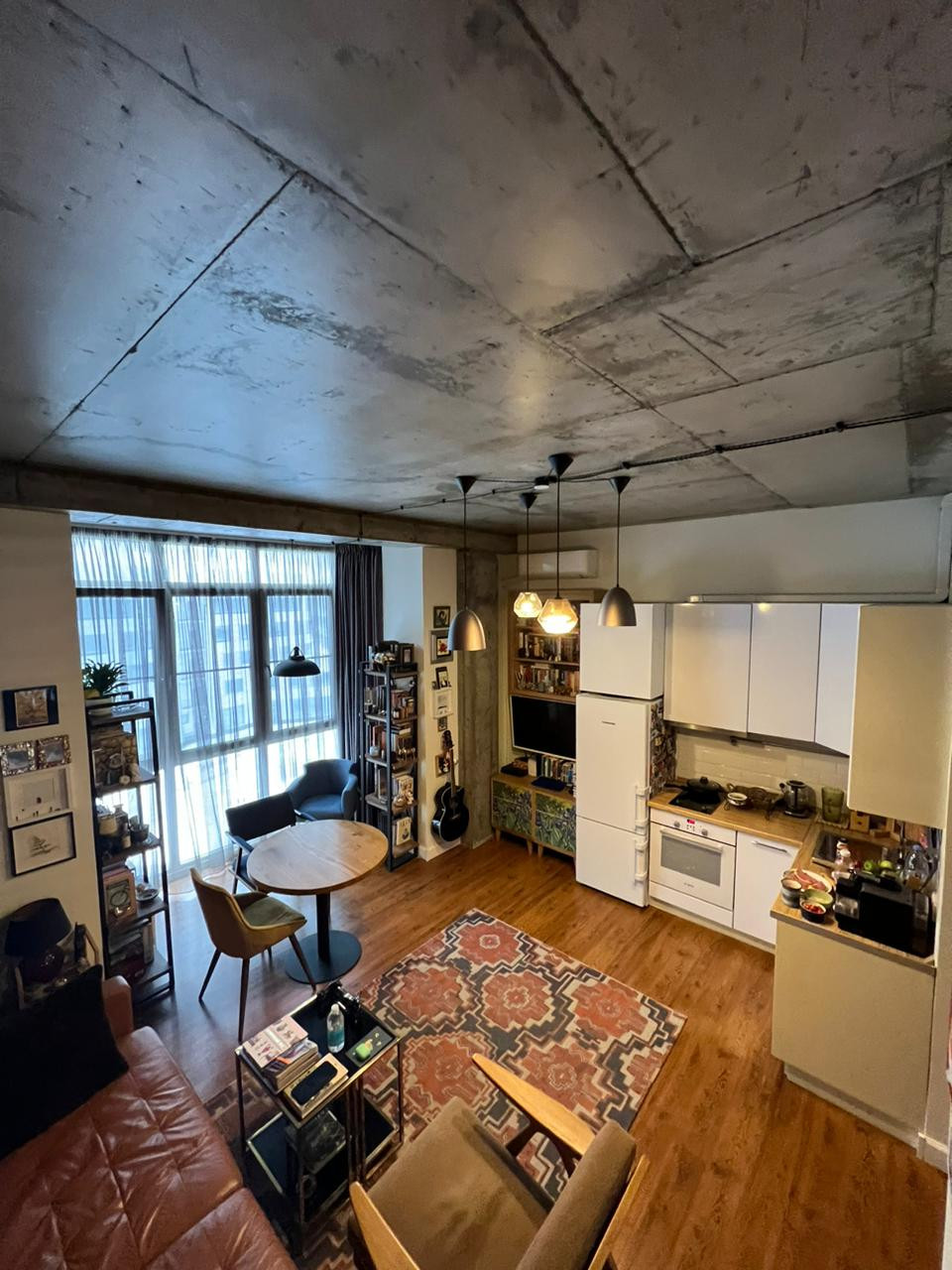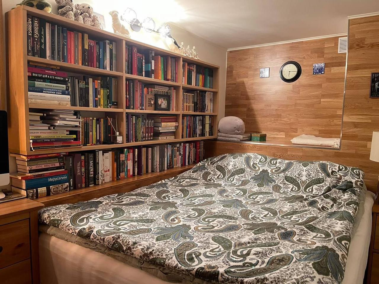 Панорамные окна в пол, кондиционер, теплые полы в коридоре и ванной, большое количества мест для хранения, духовой шкаф, СВЧ, стиральная машина, ТВ + интернет, очистители воздуха.