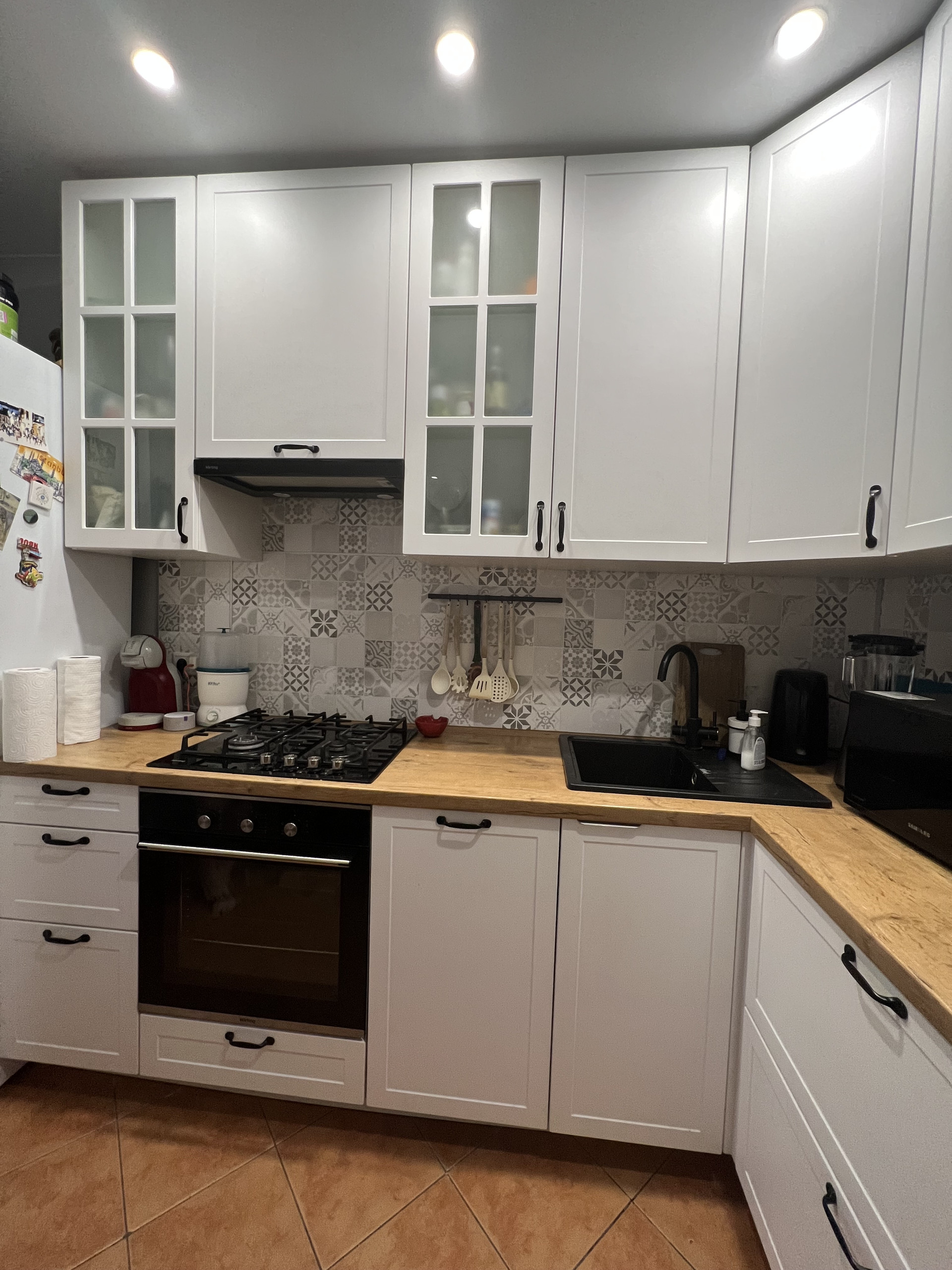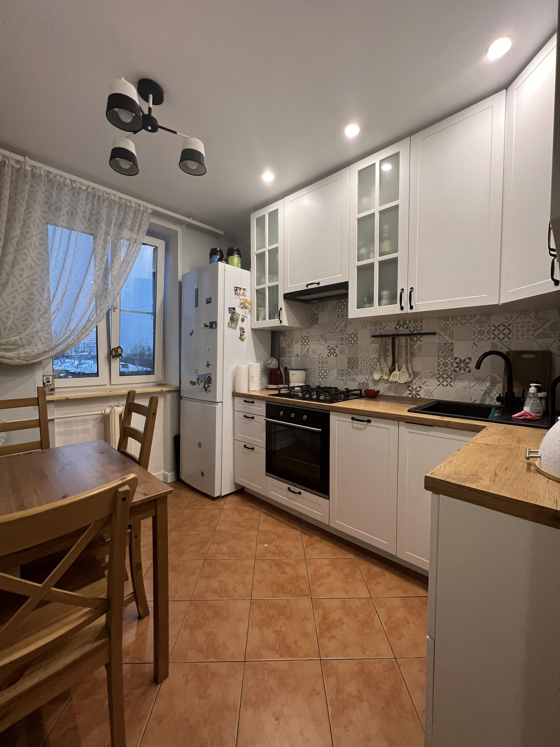 Новая кухня со всей техникой, включая посудомоечную машину.