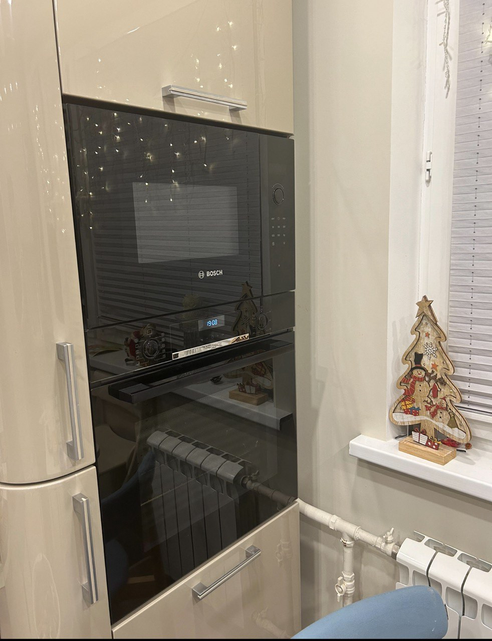 -  Кухня производства "Стильные кухни" со встроенной техникой Bosch. Две мойки, большая и маленькая с измельчителем. Петли Blum. Индукционная варочная панель.