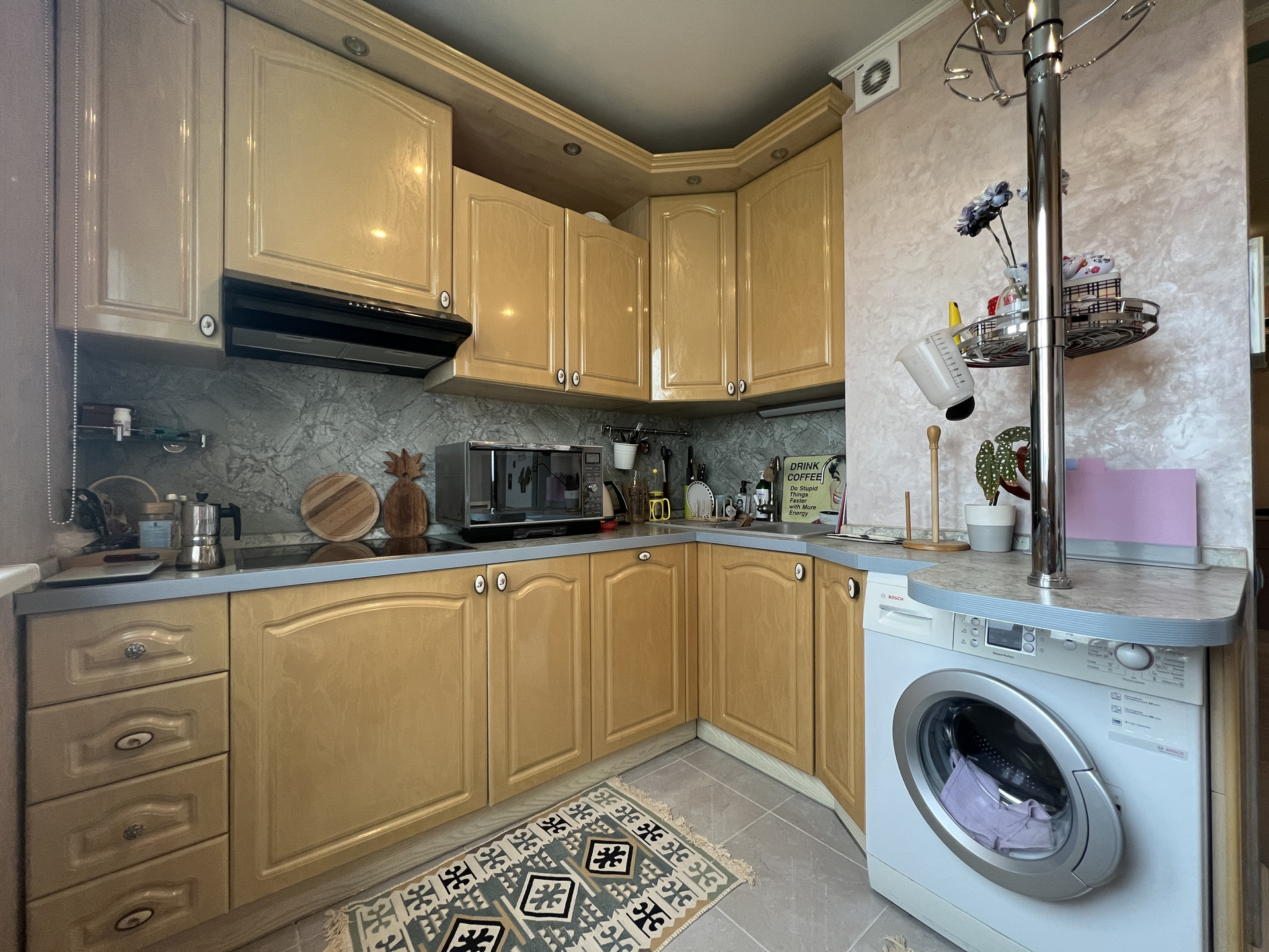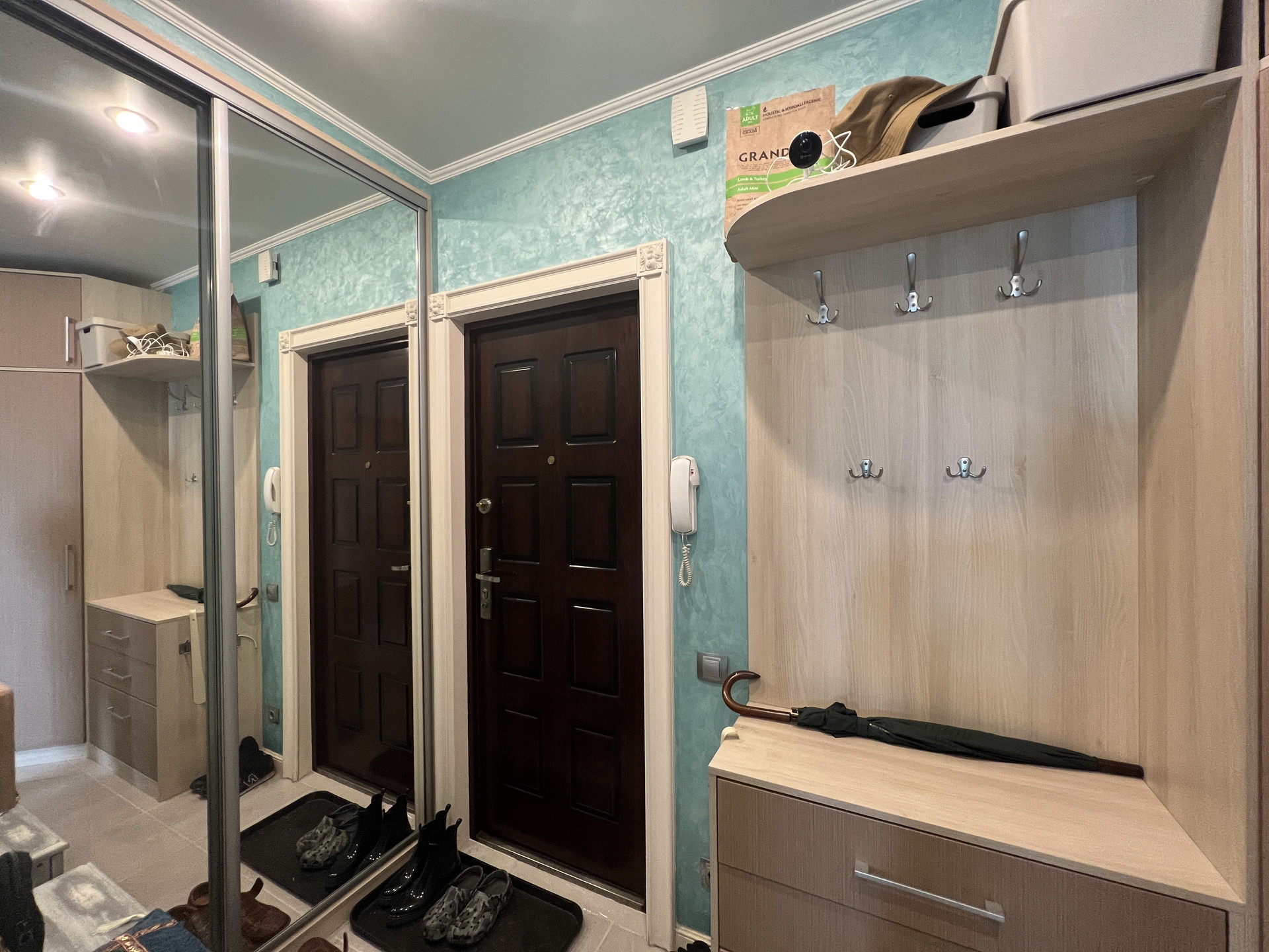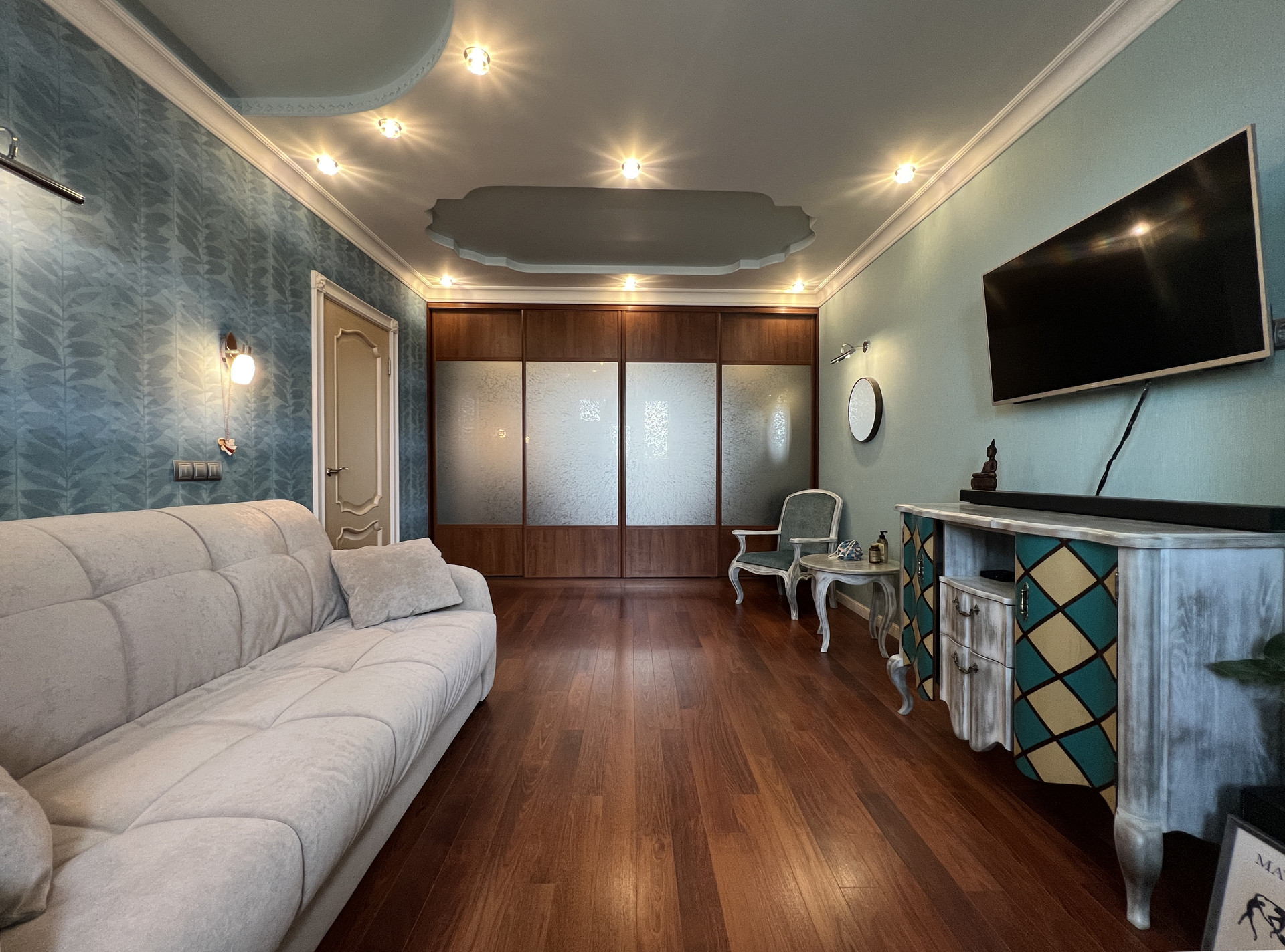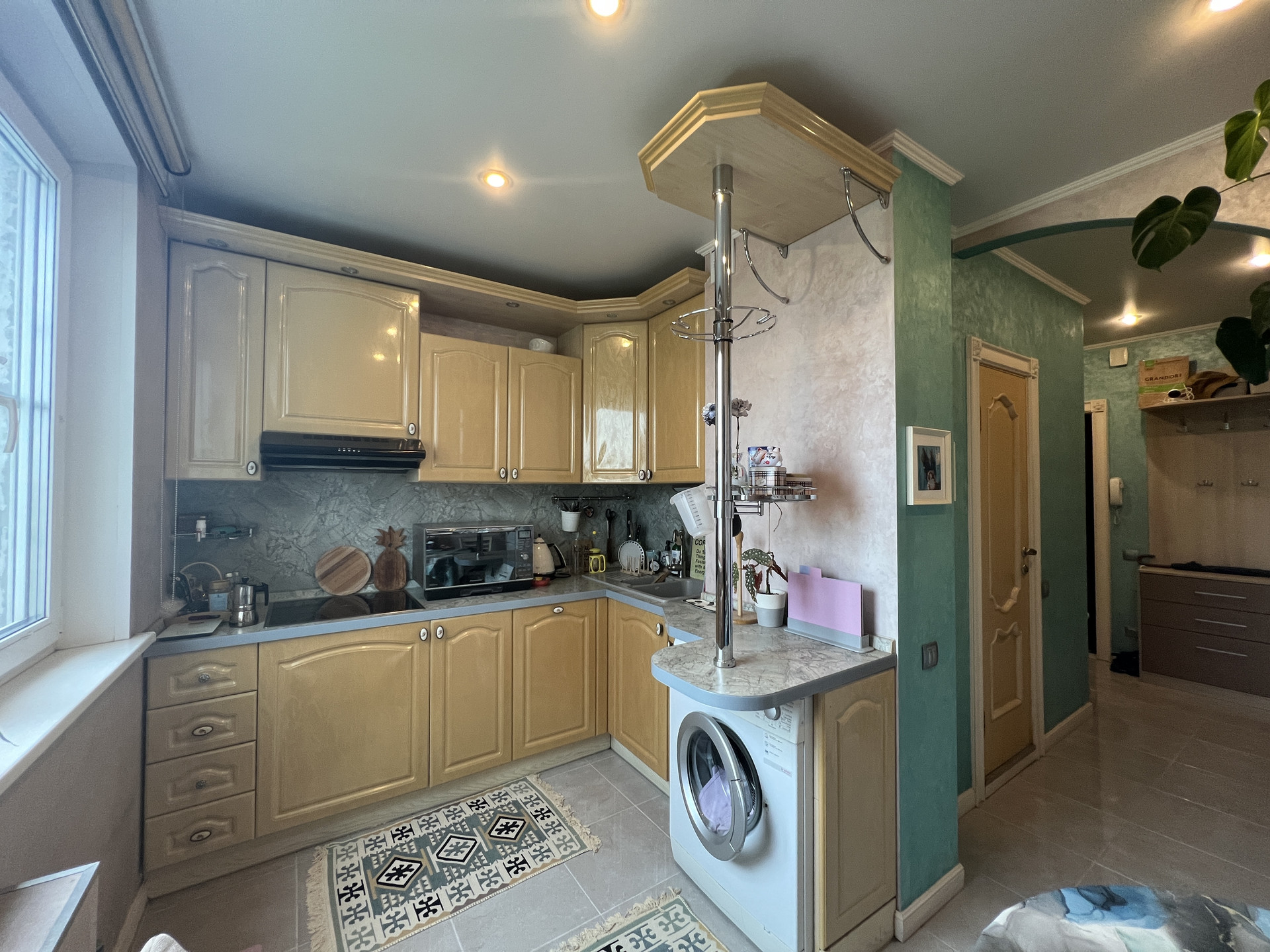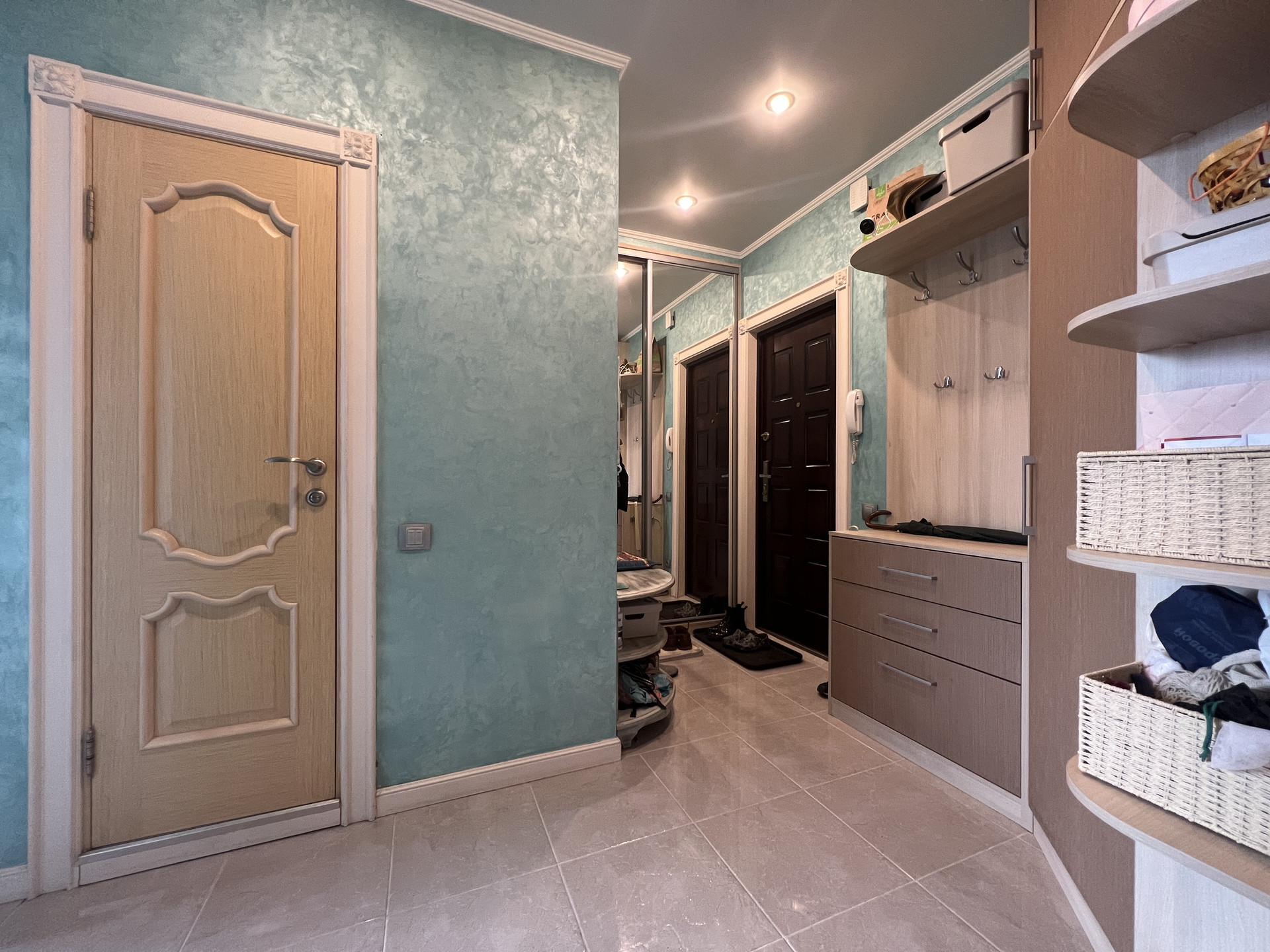 В квартире имеется вся необходимая мебель и бытовая техника, включая просторные шкафы-купэ.