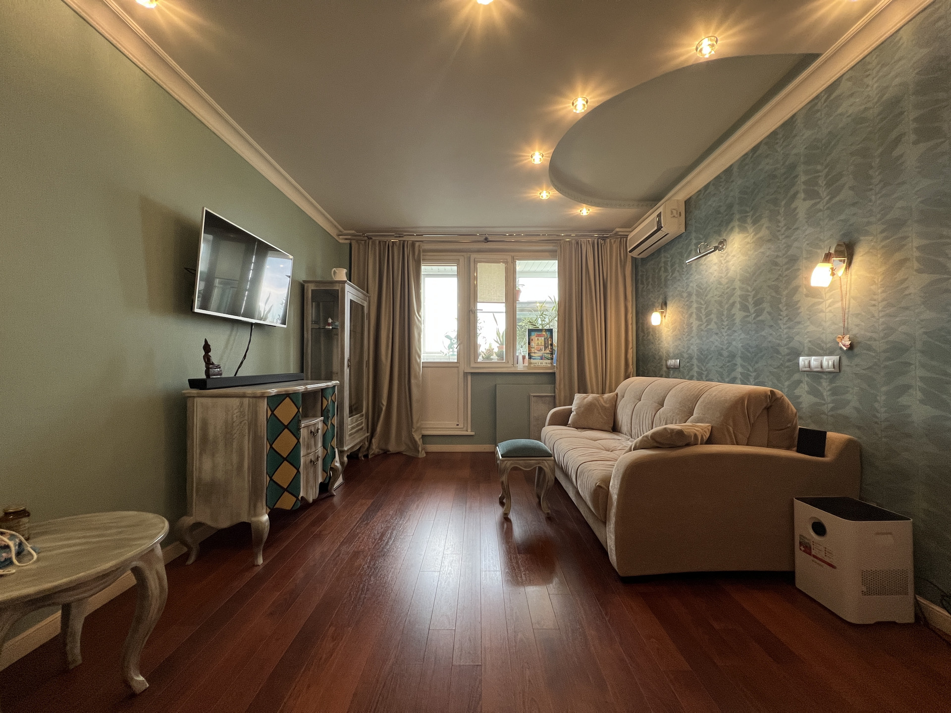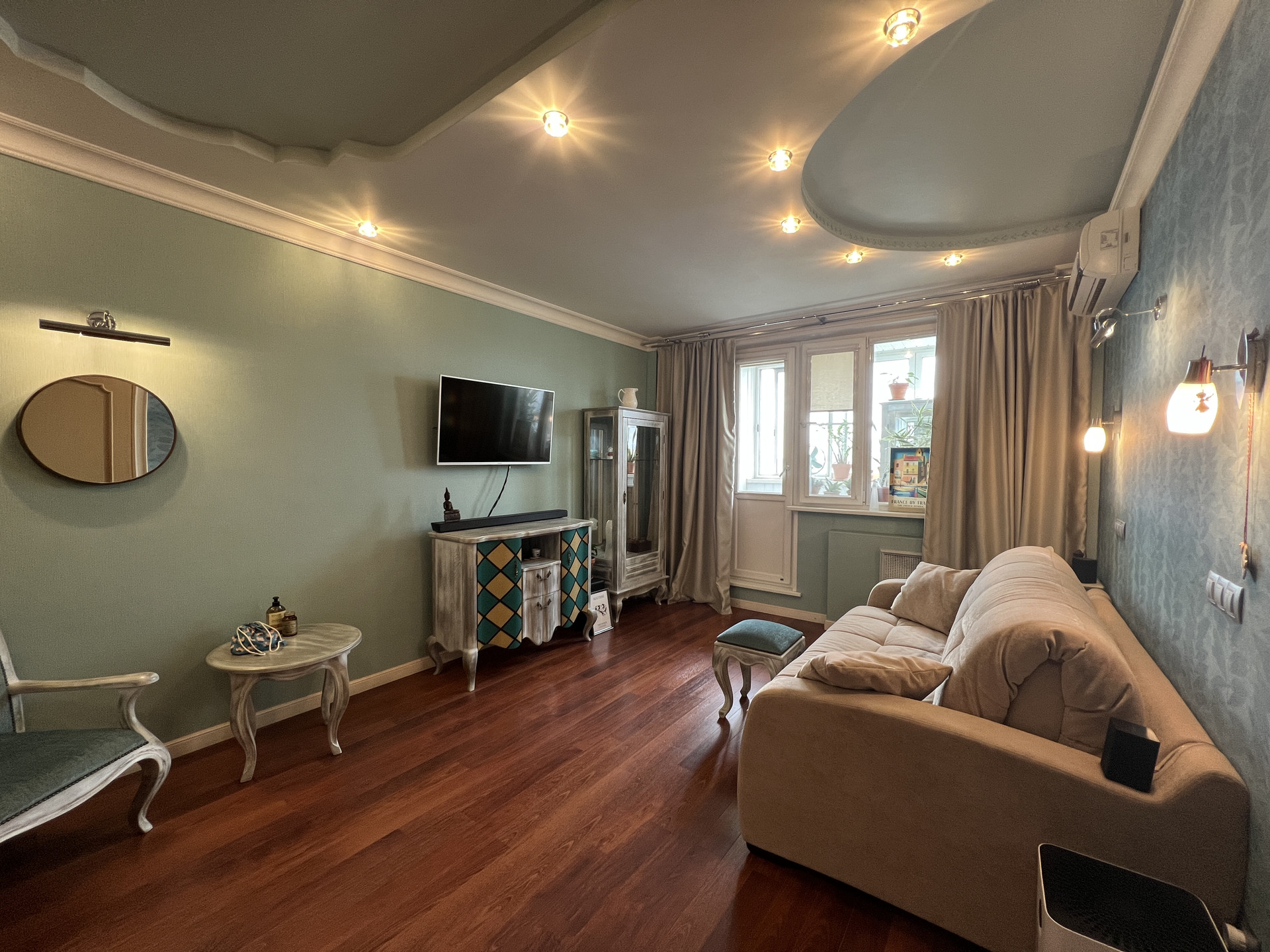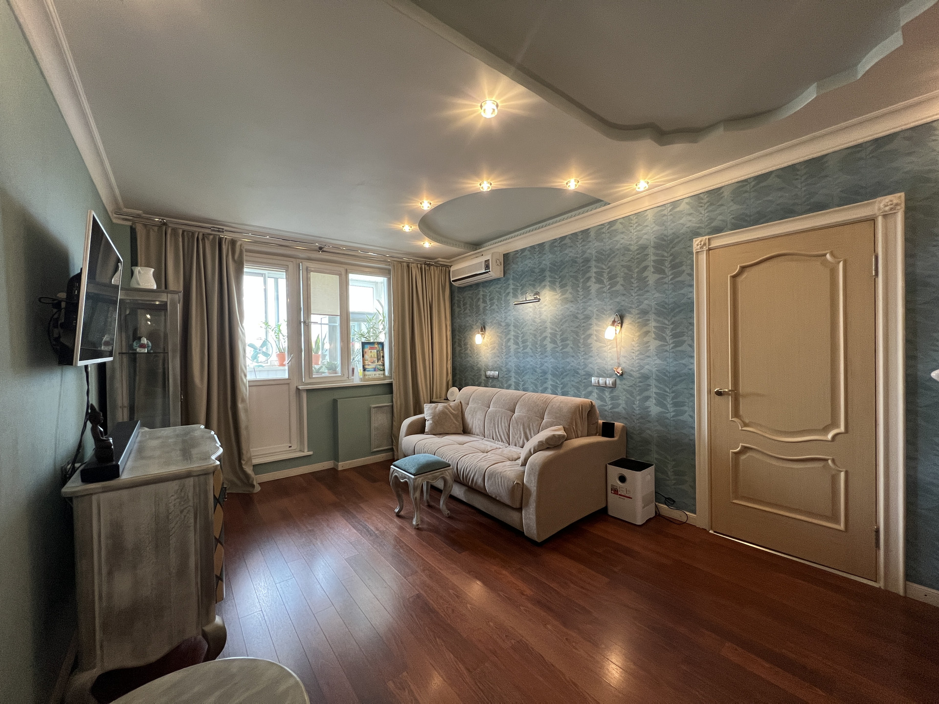 В жилой комнате установлен кондиционер.