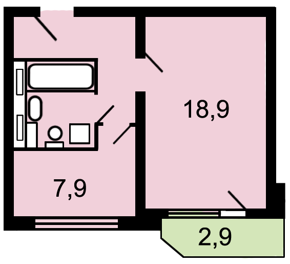 Планировка: кухня 8 кв.м., жилая комната 19 кв.м., совмещенный с/у с ванной и стиральной машиной, а так же качественно обшитая сайдингом и застекленная лоджия.