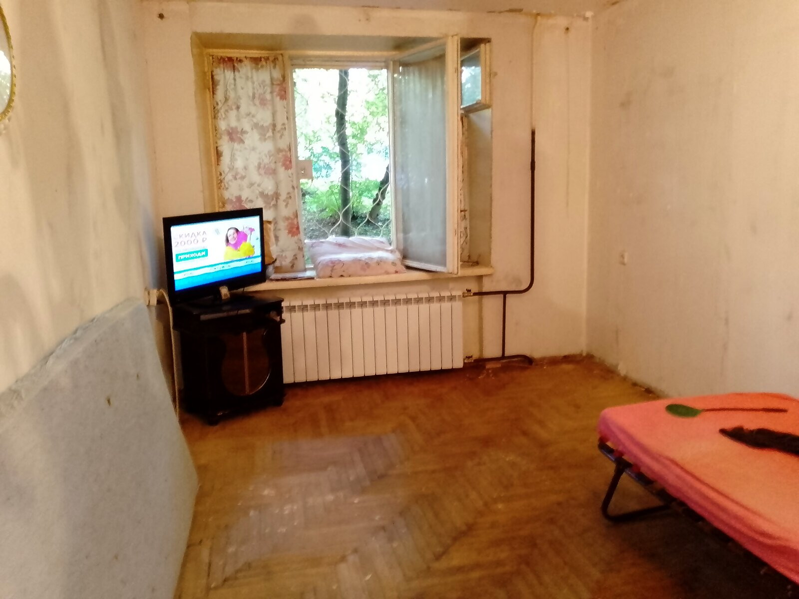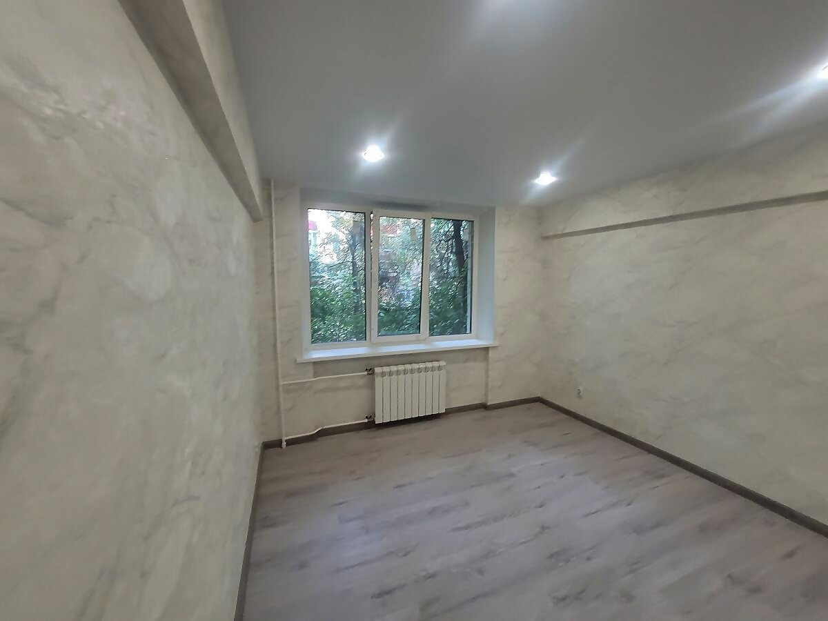 Металлическая дверь, новые радиаторы отопления. Окно с решеткой выходит на обратную сторону дома. Совмещенный санузел, кухонная зона, отдельные счетчики на свет и воду.