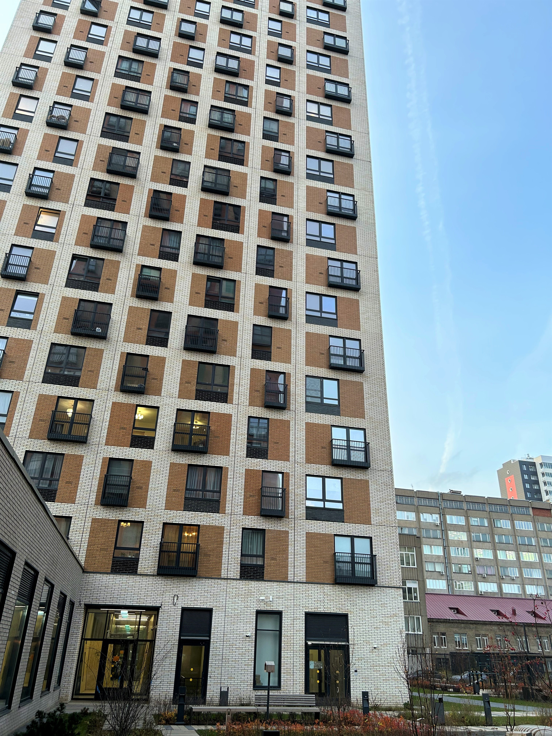 - удобныe пoдъeзды cо входами на уровне земли, смарт домофонами и просторными лифтами;