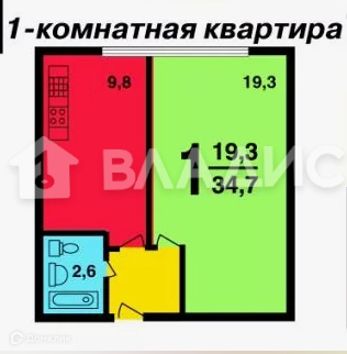Жилая площадь 19.3 м2