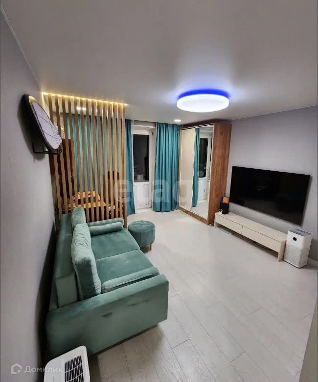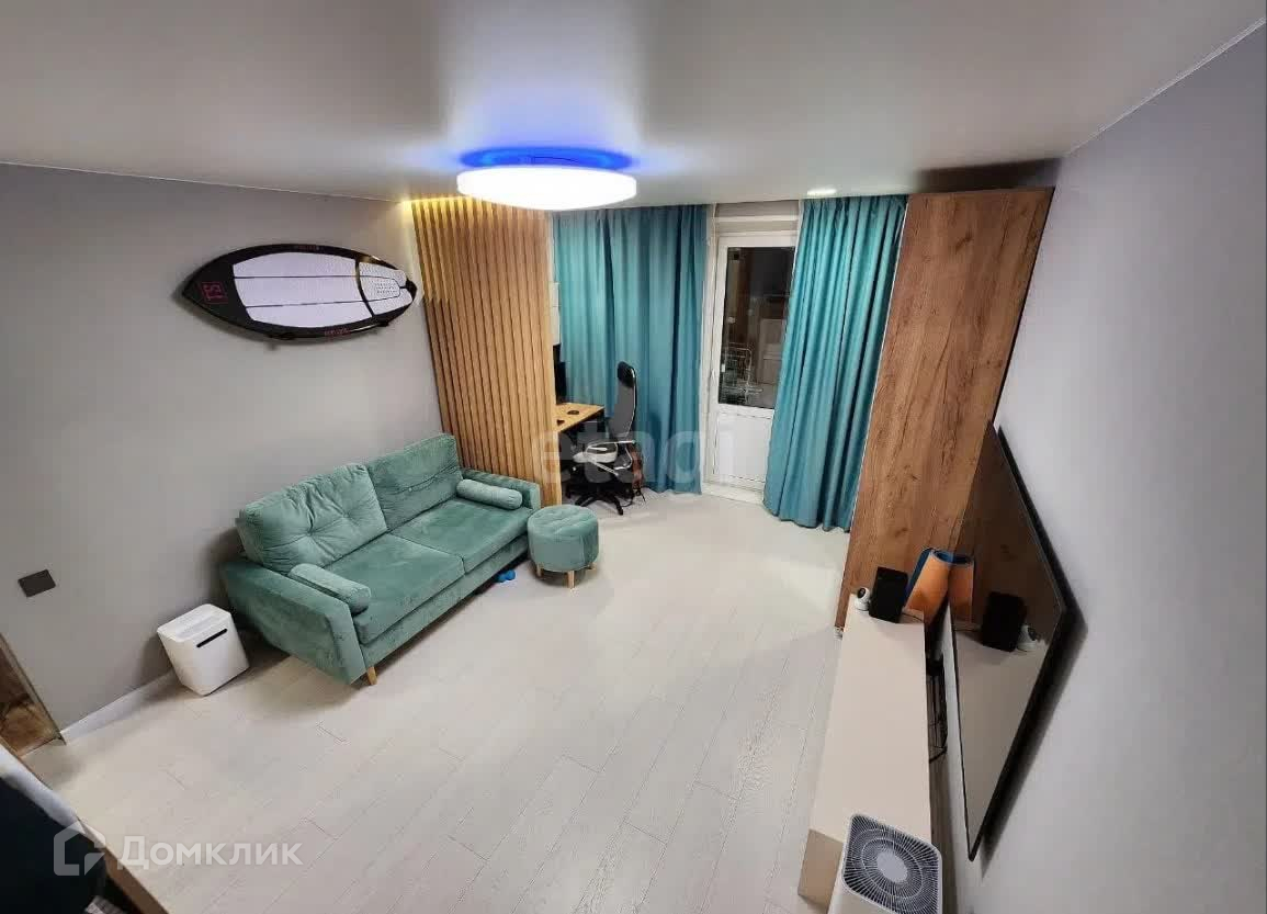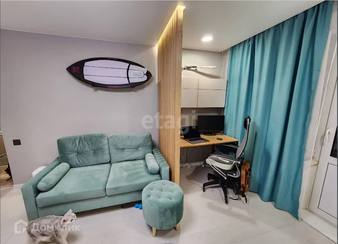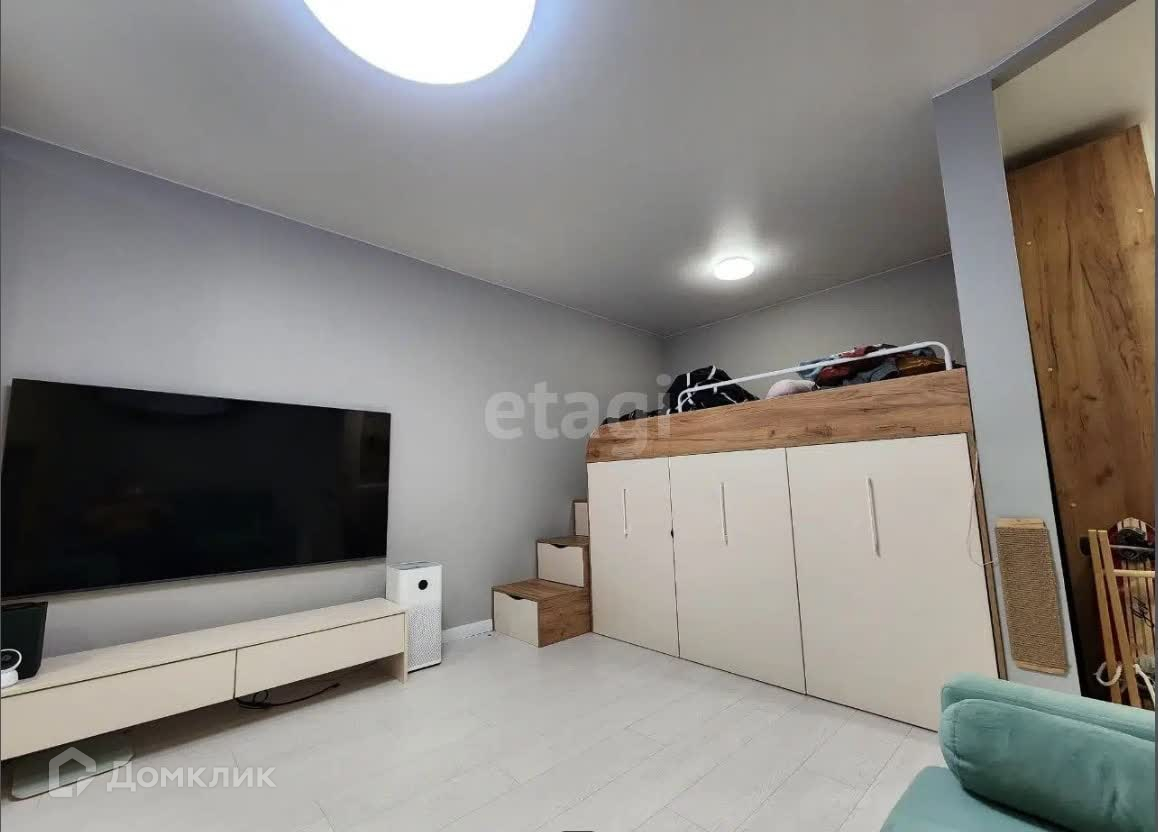 Интерьер: Квартира с дизайнерским ремонтом и продуманной системой хранения вещей (в кровать встроены выдвижные ящики, такая же система и встроена в ступеньках). Имеется лоджия длиной с кухни и комнаты со встроенным шкафом и комодом. Квартира имеет систему "умный дом" с Яндекс станцией , свет и электричество контролируется через вышеуказанную систему.