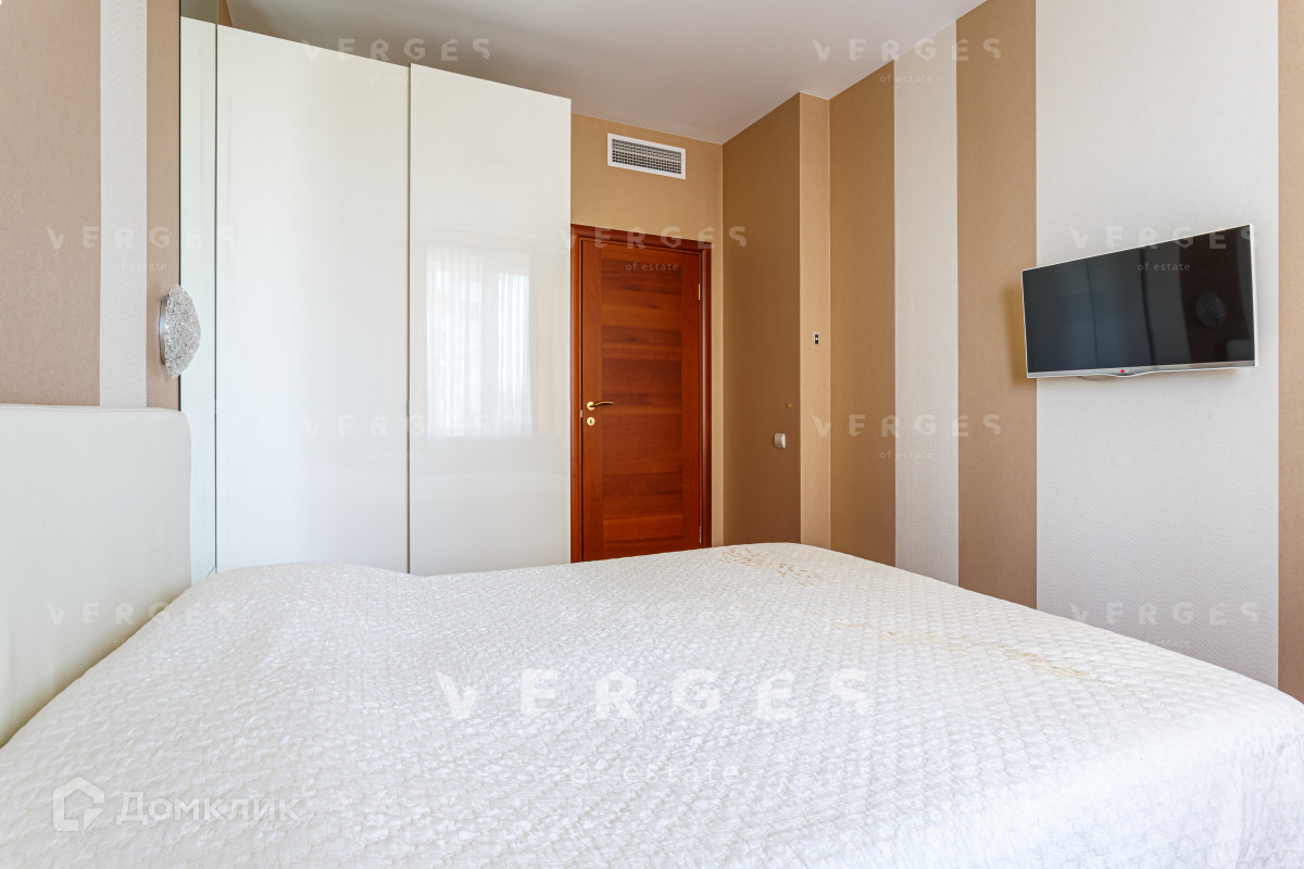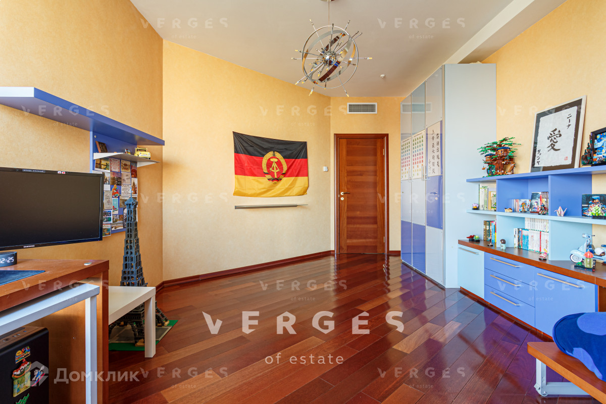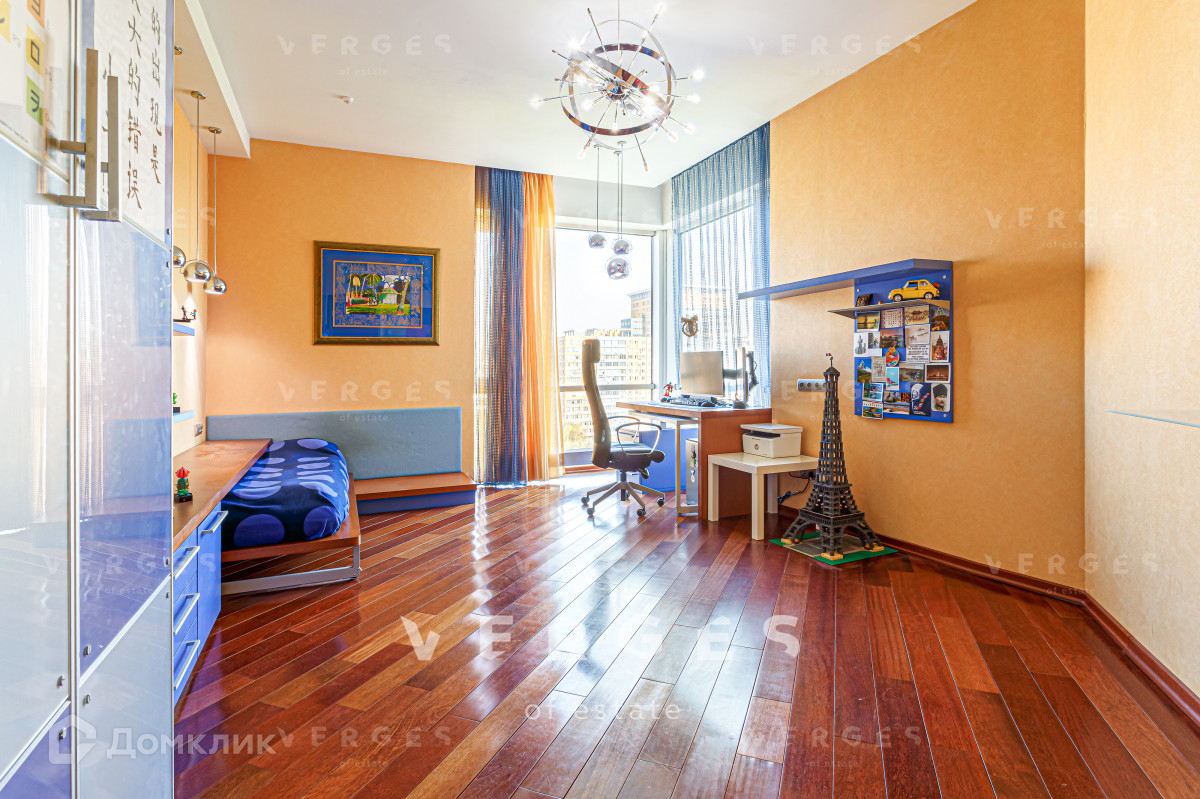 Планировка квартиры продумана до мелочей. Три спальные комнаты, кухня-гостиная, 2 санузла, постирочная и гардеробная. Из окон гостиной открывается потрясающий вид на природное озеро. В квартире дорогая, дизайнерская отделка: паркетная доска, шелковые обои, техника и мебель от ведущих мировых брендов.