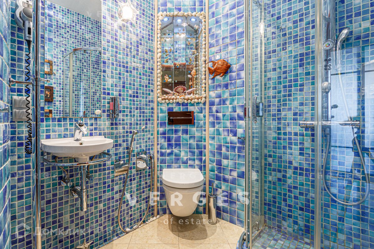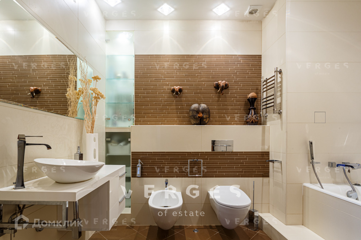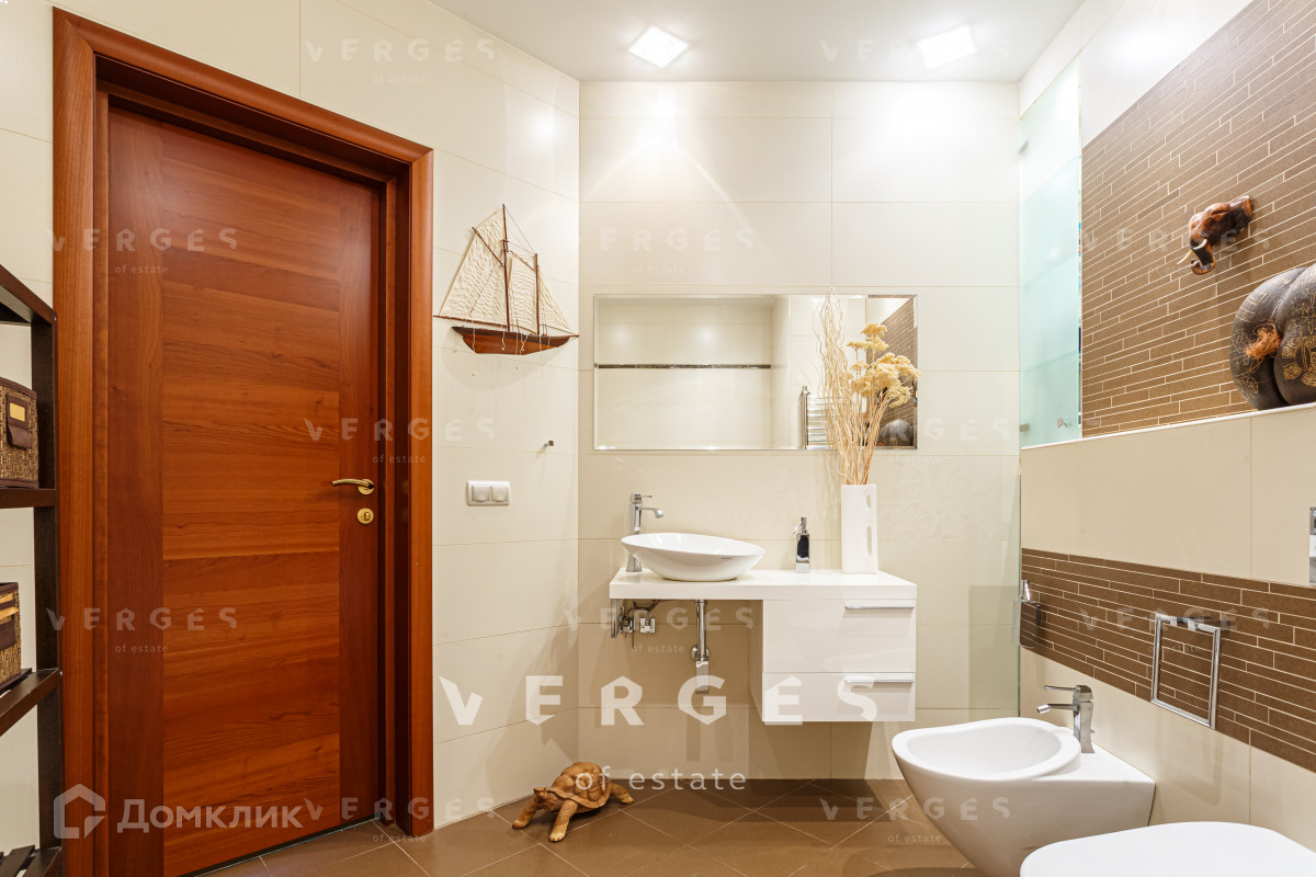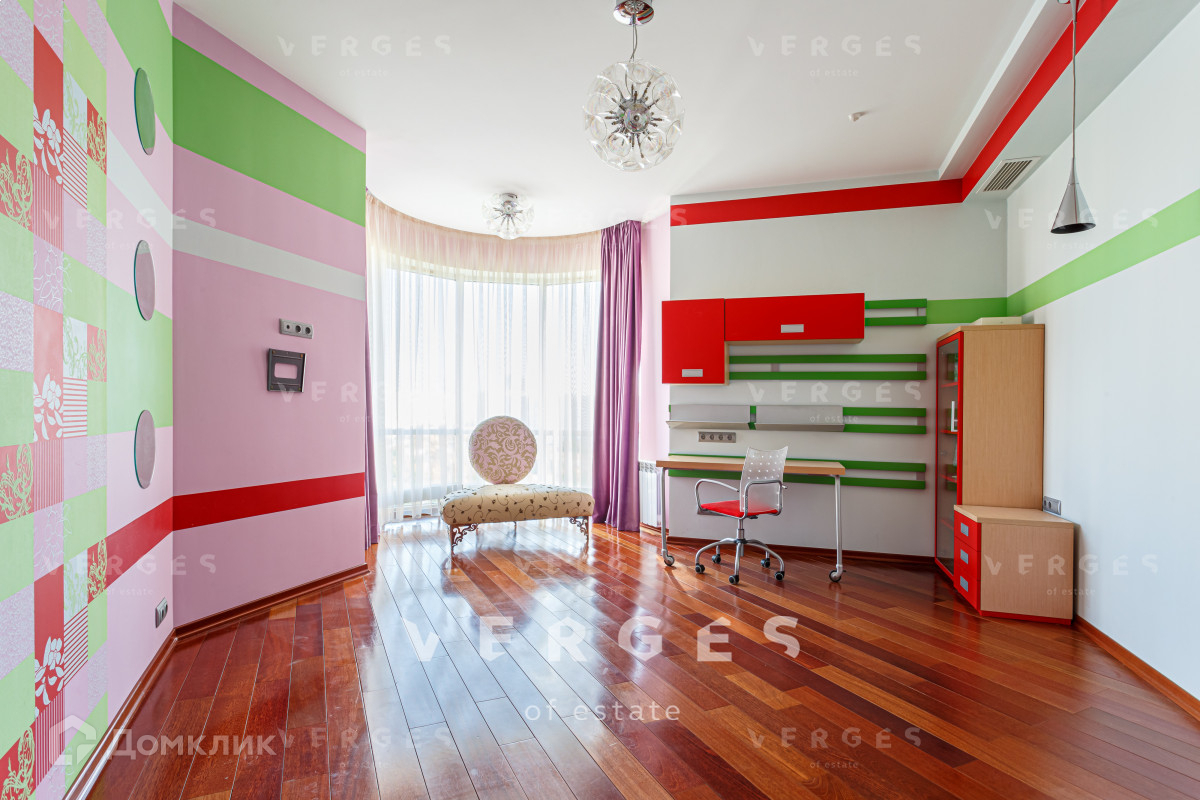 Планировка квартиры продумана до мелочей. Три спальные комнаты, кухня-гостиная, 2 санузла, постирочная и гардеробная. Из окон гостиной открывается потрясающий вид на природное озеро. В квартире дорогая, дизайнерская отделка: паркетная доска, шелковые обои, техника и мебель от ведущих мировых брендов.