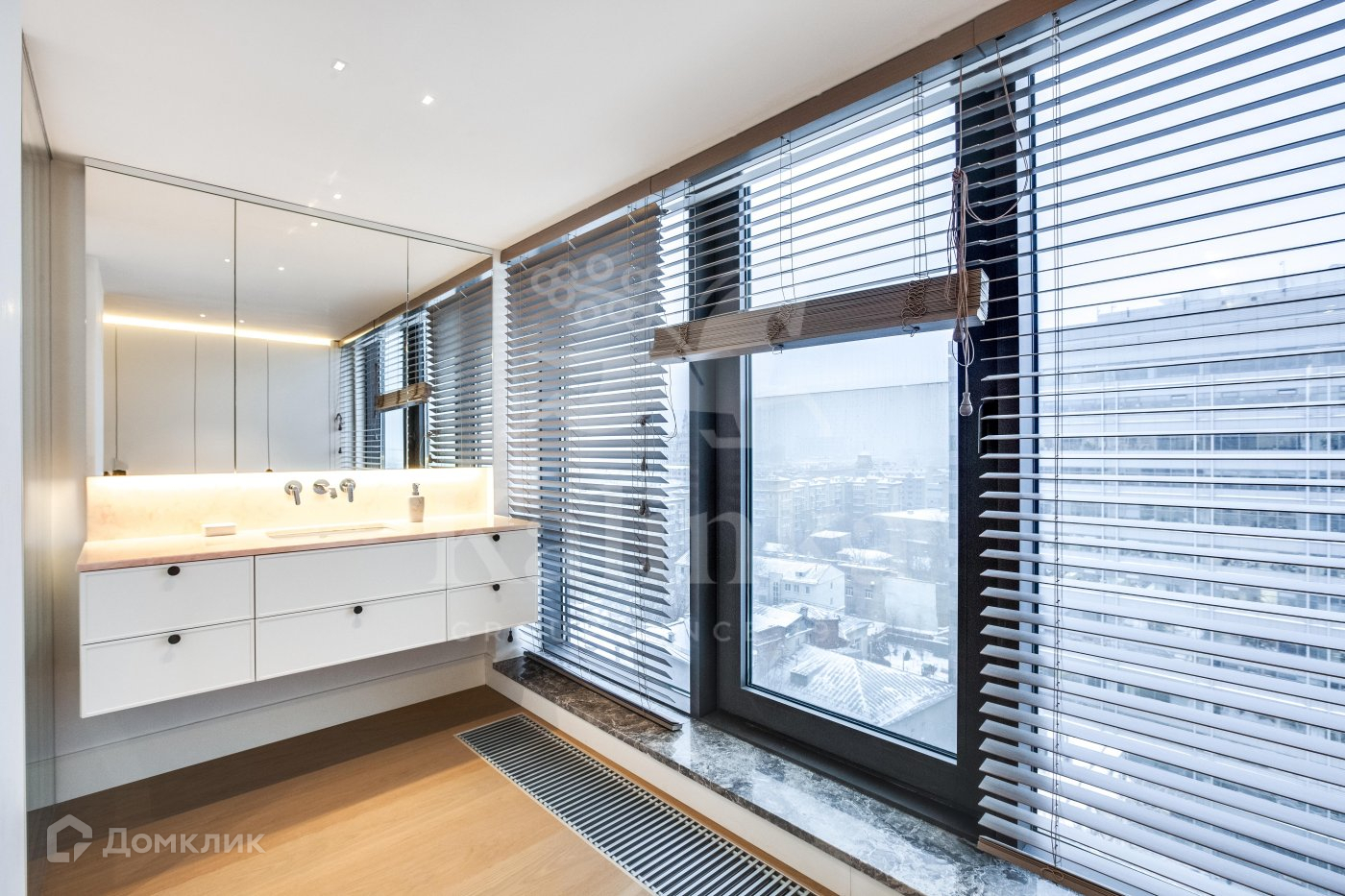 1 этаж: просторная гостиная с биокамином и панорамным видом на Москву, кухня, постирочная, мастер-спальня со своей ванной комнатой и гардеробной, гостевой санузел, гардеробная при входе.