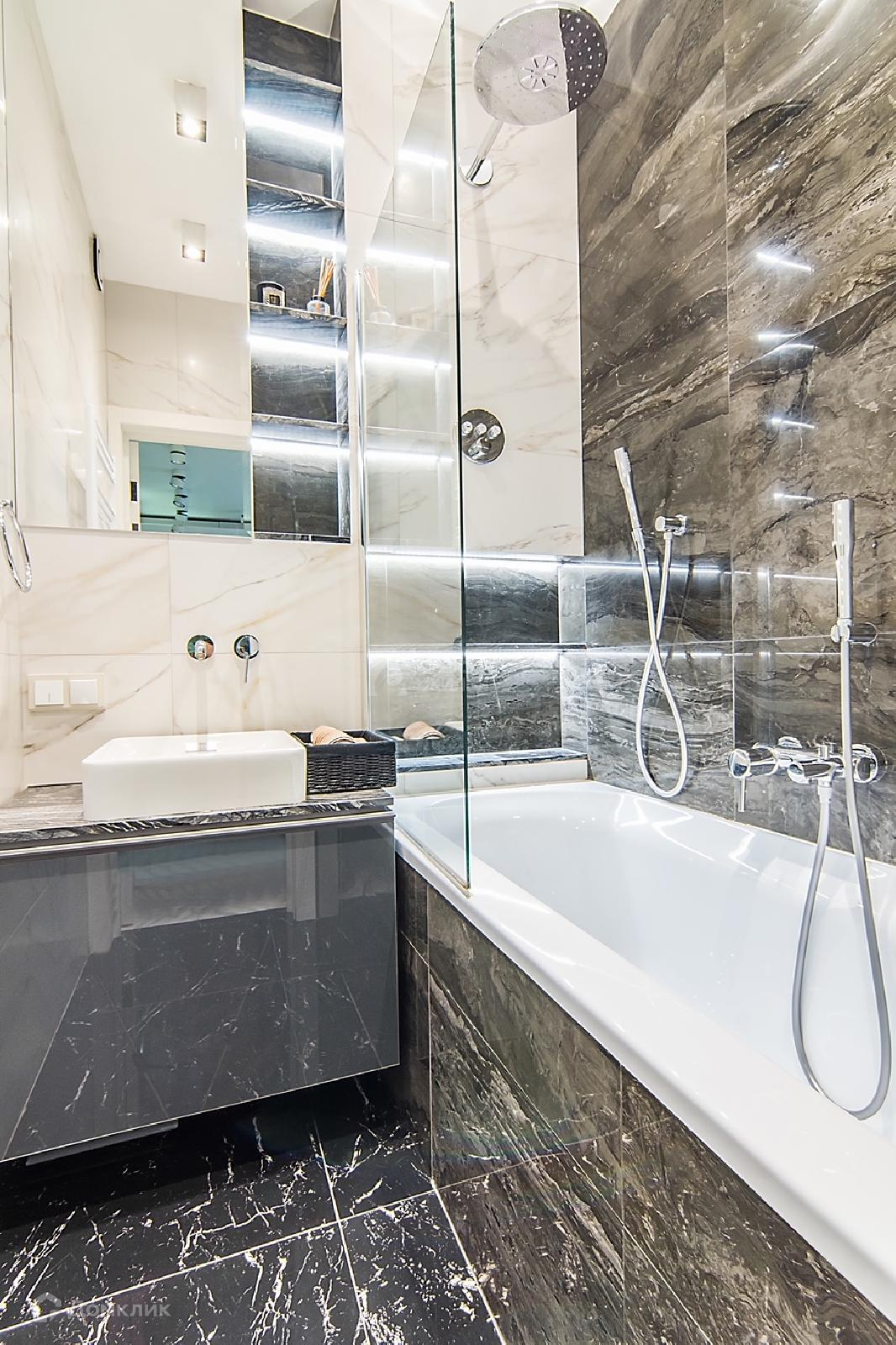 В ванной система с терморегулятором и тропическим душем. Ванна и раковина Jacob de la fon. Сан узел с инсталляцией. Все смесители Grohe.