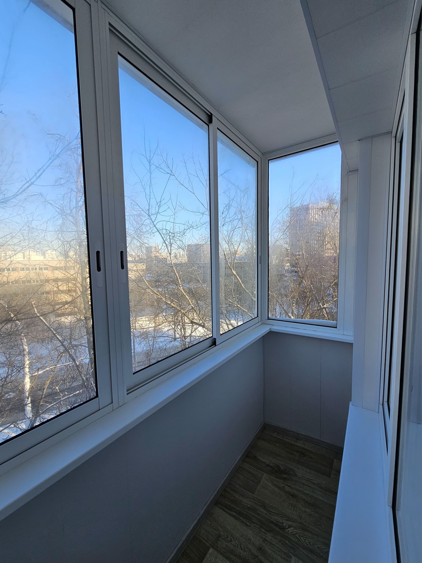 Установлен кондиционер. При остеклении балкона предусмотрена открывающаяся створка для обслуживания внешнего блока.