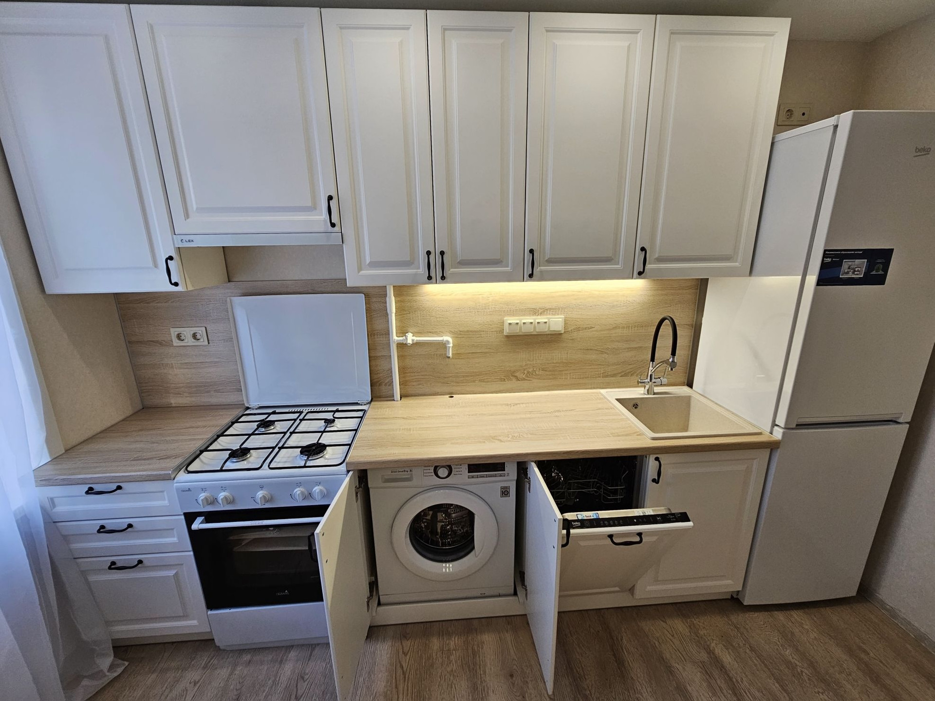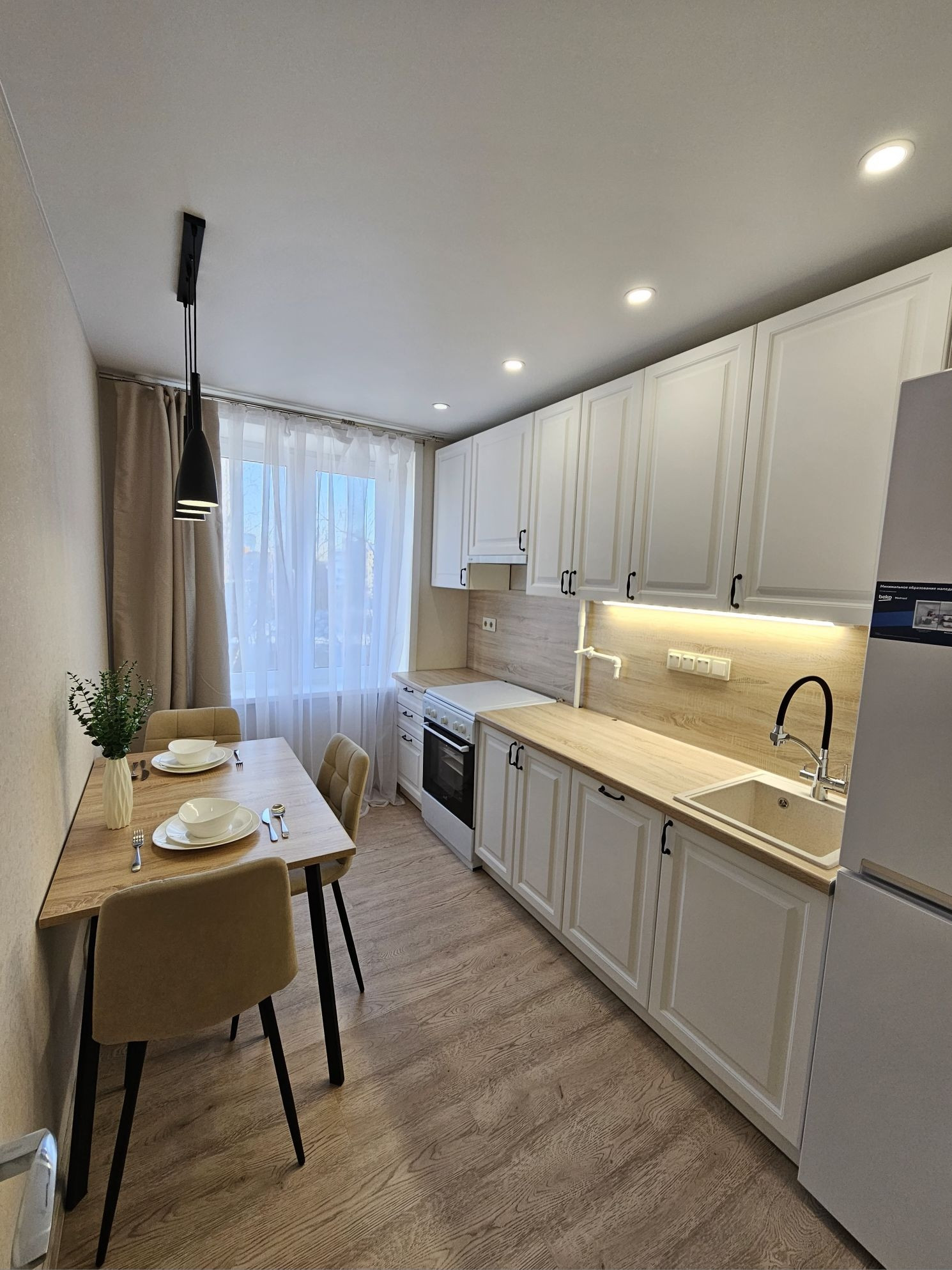 Пол - влагостойкий ламинат. Вся мебель, техника, сантехника новая и на гарантии (кроме стиральной машины, она качественная б/у). Техника подключена и готова к использованию. Чеки и гарантийные талоны будут переданы новому владельцу. Оптика для интернета проведена внутри стены (МГТС).