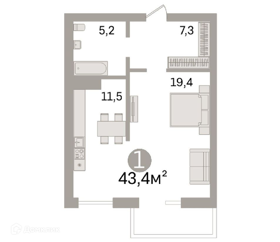 Общая площадь 43.4 м2