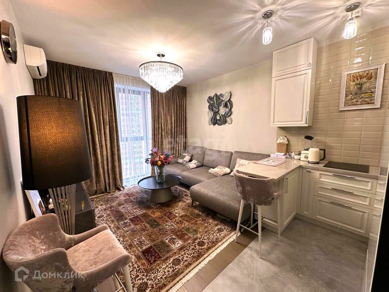 В квартире сделан ремонт по дизайн-проекту с использованием качественных дорогих материалов, вся мебель и техника остается в квартире, панорамные окна в квартире, очень светло и уютно, вид на парк победы.