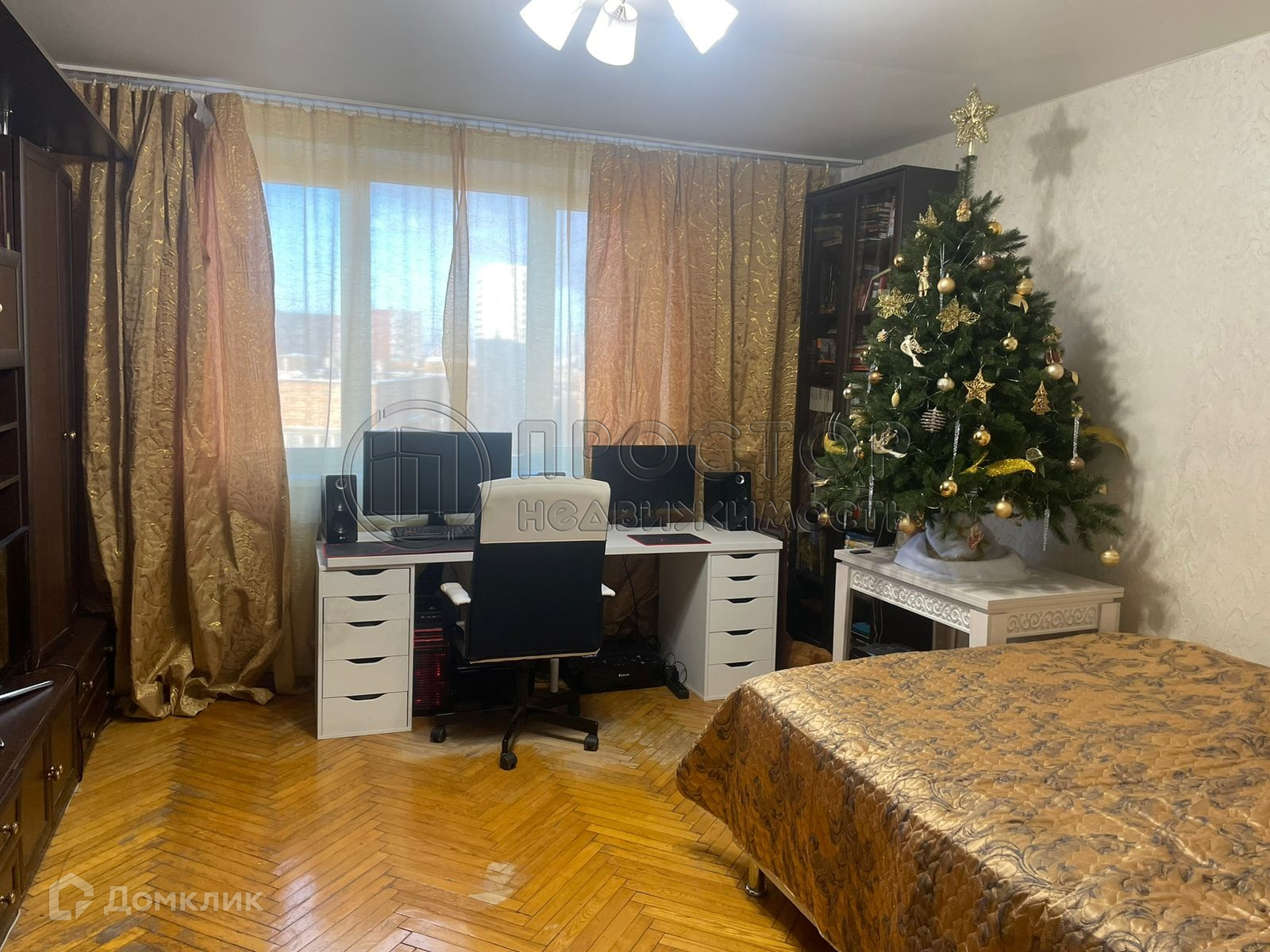 Состояние жилое, но требует не слишком затратного, косметического ремонта: обновить стены, циклевать паркет. Все окна стеклопакеты, во дворы с обеих сторон дома. Потолки натяжные в кухне, гостиной и коридоре.
