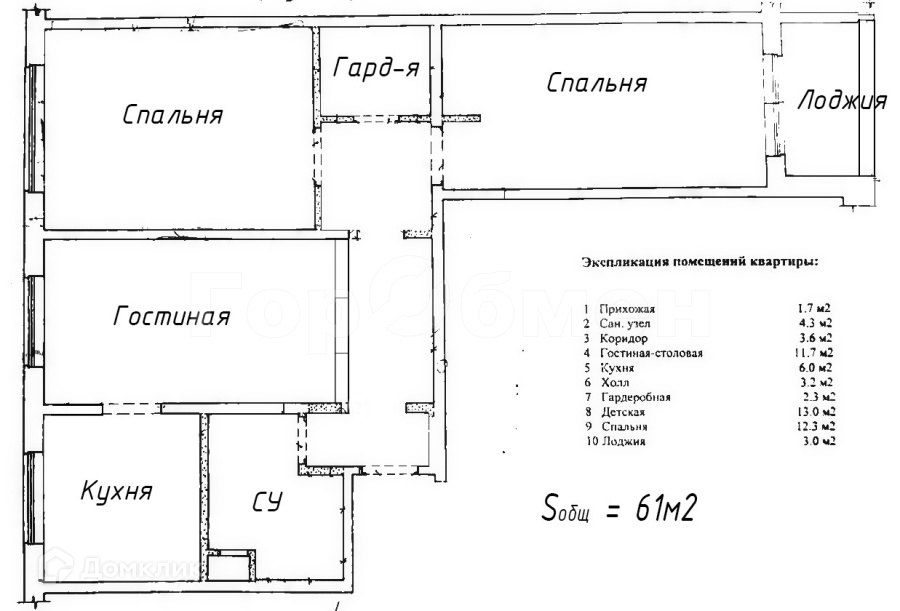 Общая площадь 61 м2