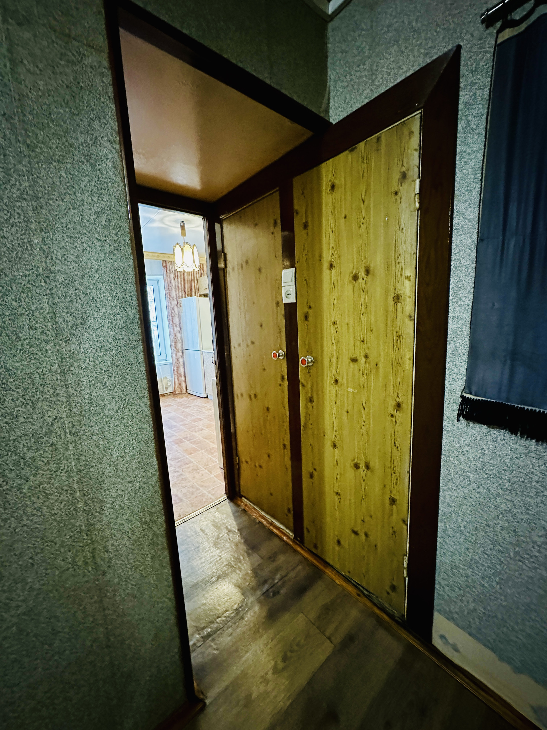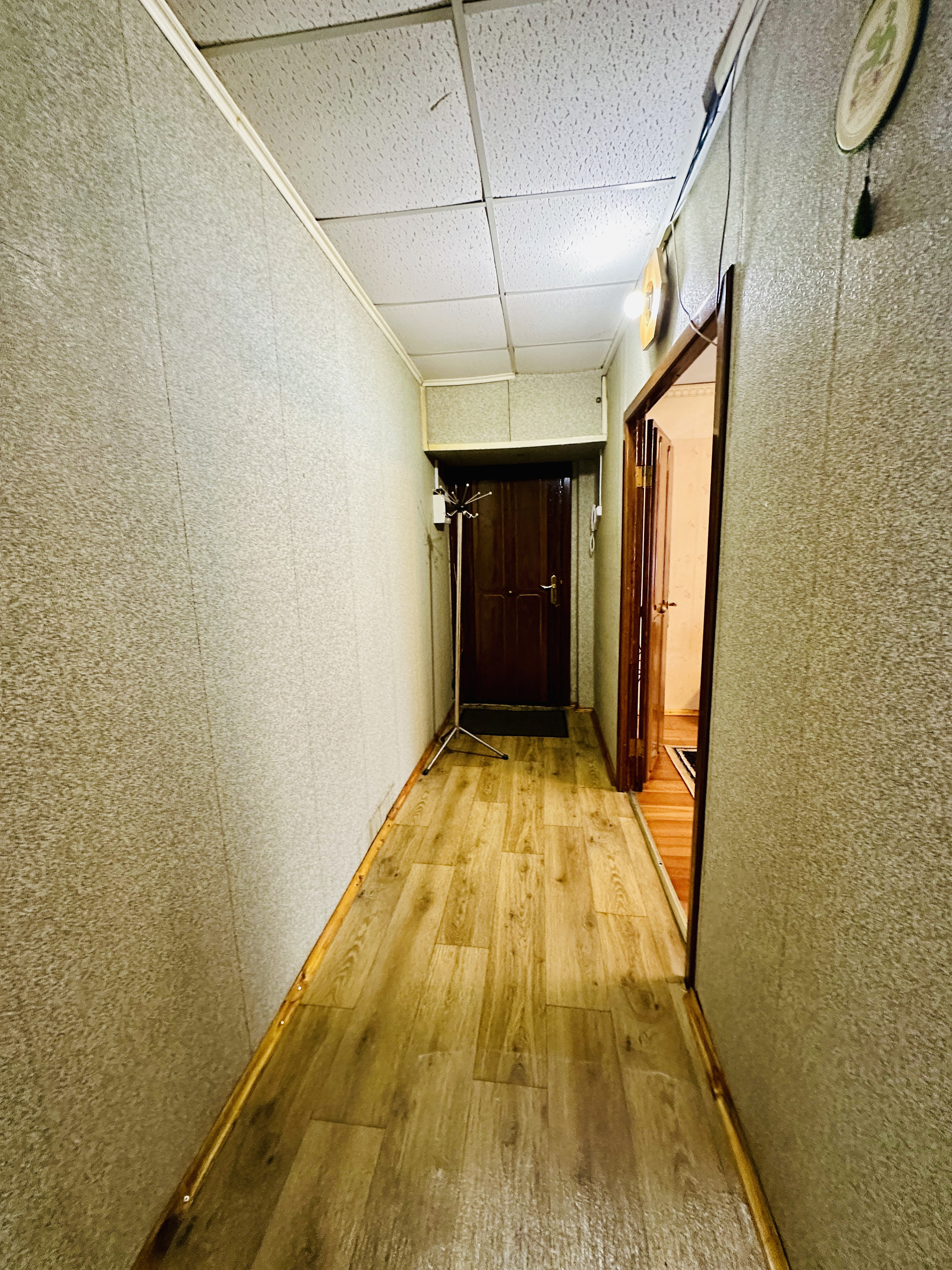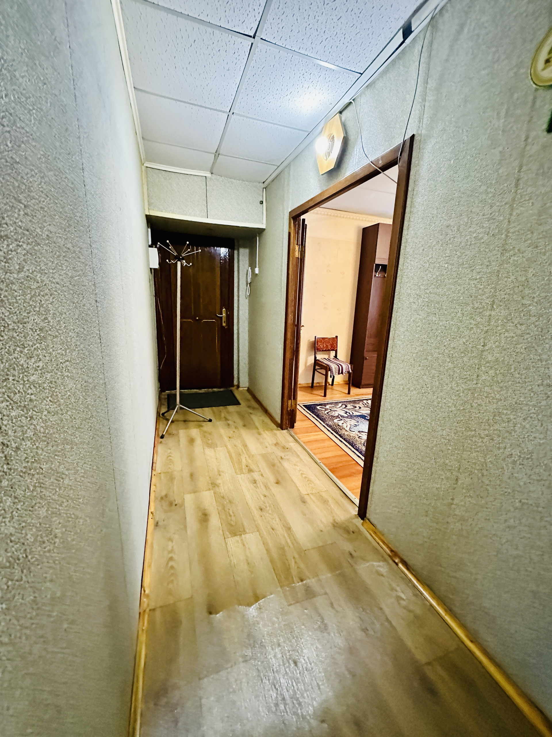 Планировка квартиры «распашонка»: вместительный коридор, куда может встать шкаф для верхней одежды, кухня - 9,4 м.кв. с кухонным гарнитуром и полноценные две комнаты 16,8м.кв. и 12,3 м.кв. с выходом на лоджию. Перепланировок нет.