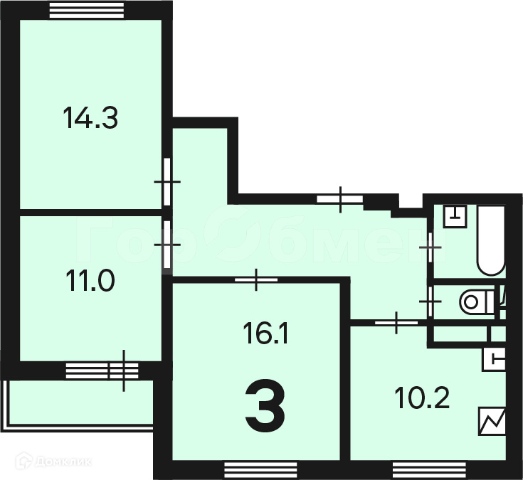 Количество комнат 3