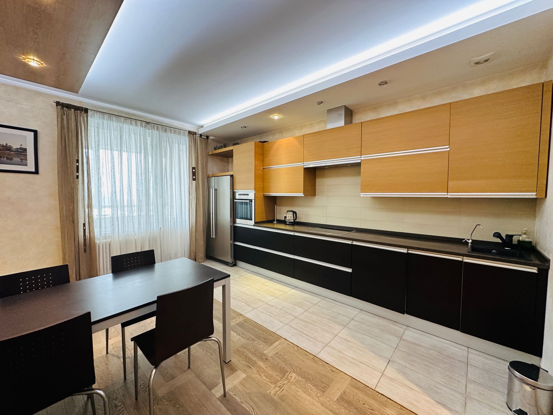 ПРО РЕМОНТ. Отделка - паркетные полы Нидерланды, фактурные, декоративные штукатурки, кухня, кабинет - Германия, СУ - Германия, Италия (Duravit), Спальни - Италия, кондиционированиe -Daikin, система очистки воздуха, тренажер - Kettler, Душ кабина с сауной, ванна -jacuzzi, техника - Miele, Bosch,