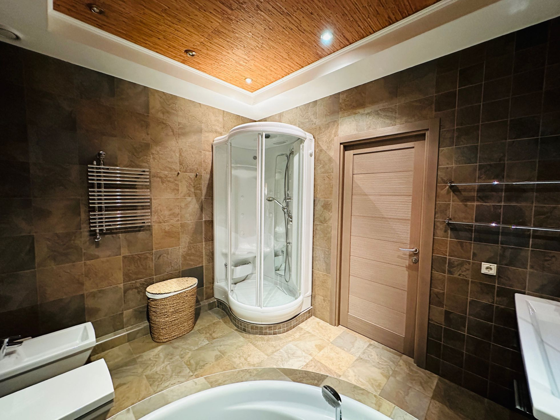 домашний кинотеатр -Pioneer, двери деревянные - Romagnoli, смонтирована системы охраны, видео, протечки, бойлер, все качественно, дорогие европейские отделочные материалы. Все остается, можно сразу заезжать и жить.