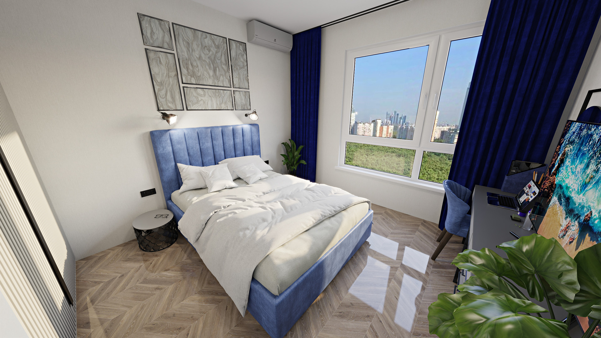 Приватная спальня с ПАНОРАМНЫМ ОКНОМ 2 метра и видом на огромный лесопарк. Кровать 200*220 и глубокая ниша для шкафа 180*70