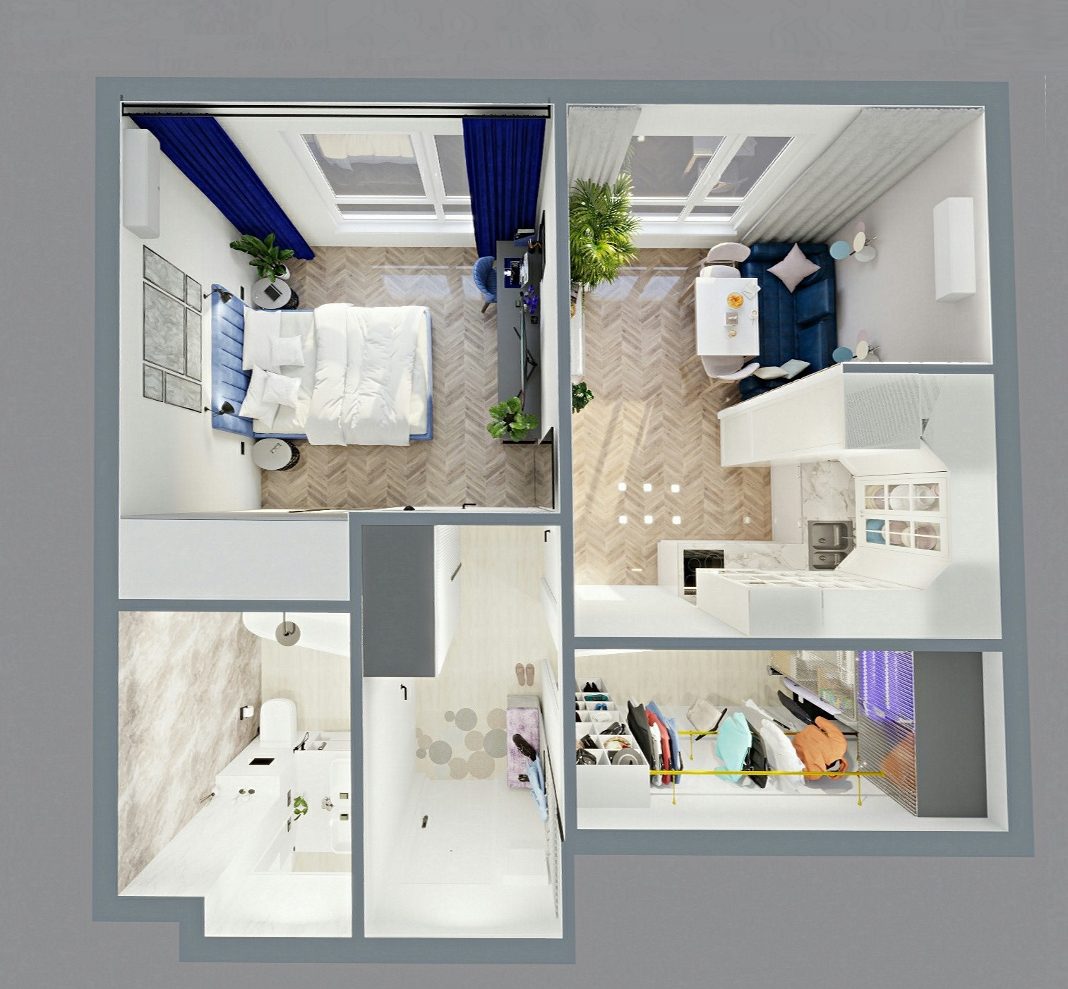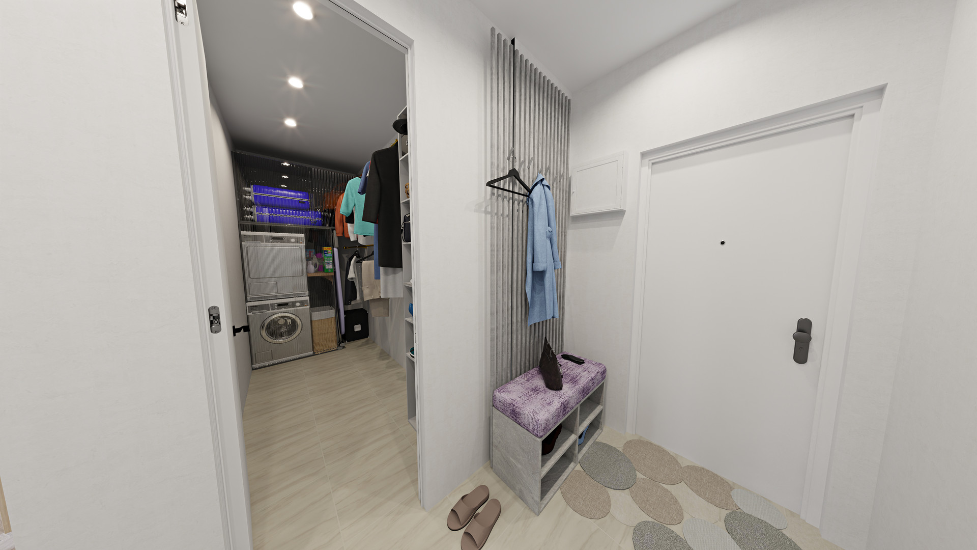 ГАРДЕРОБНАЯ 4,6м со входом из прихожей: хранение обуви, спорт инвентаря, гладильной доски, чемоданов... а еще шкаф для обуви и широкий постирочный шкаф со стиральной и сушильной машинами!