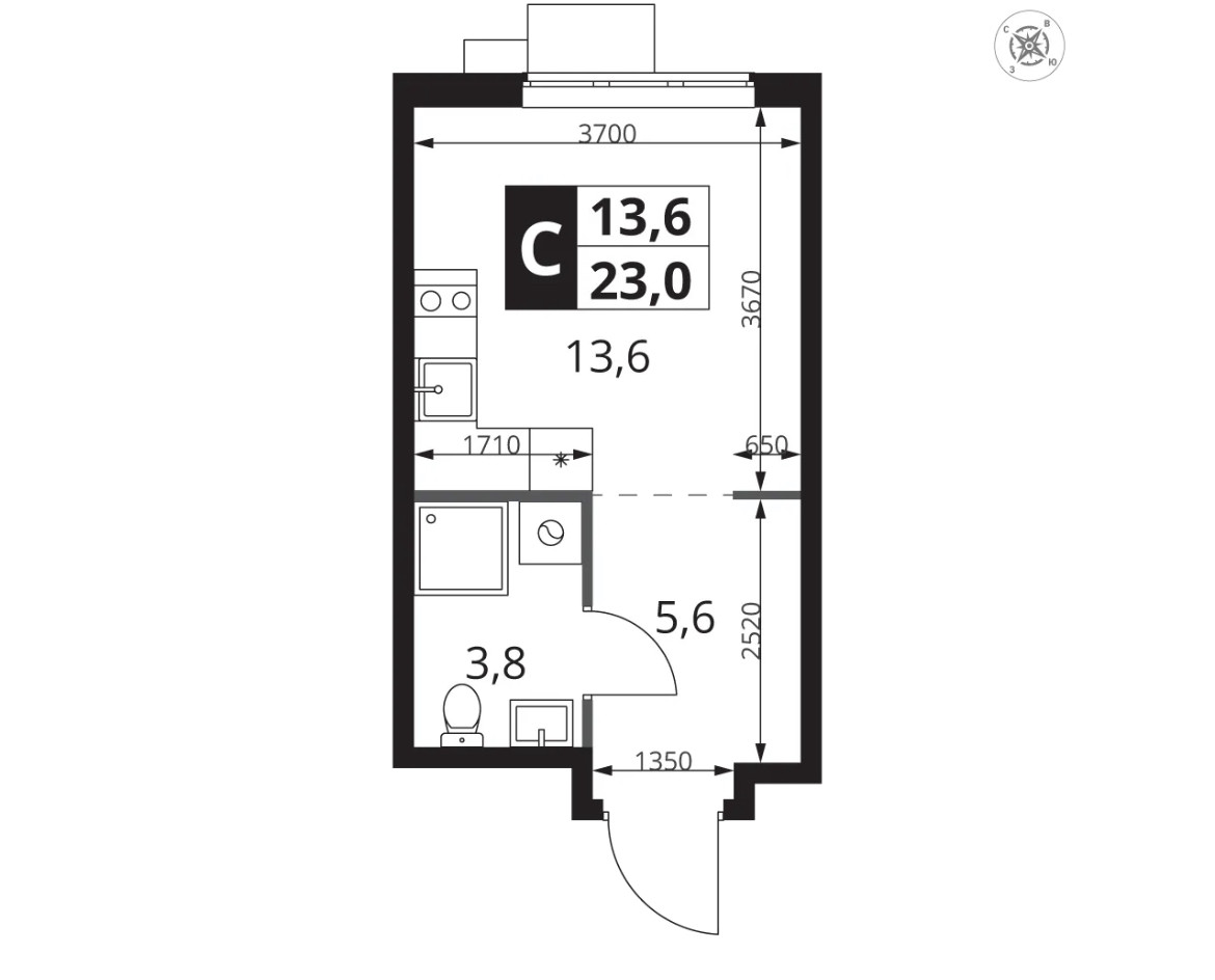 Общая площадь 23 м2