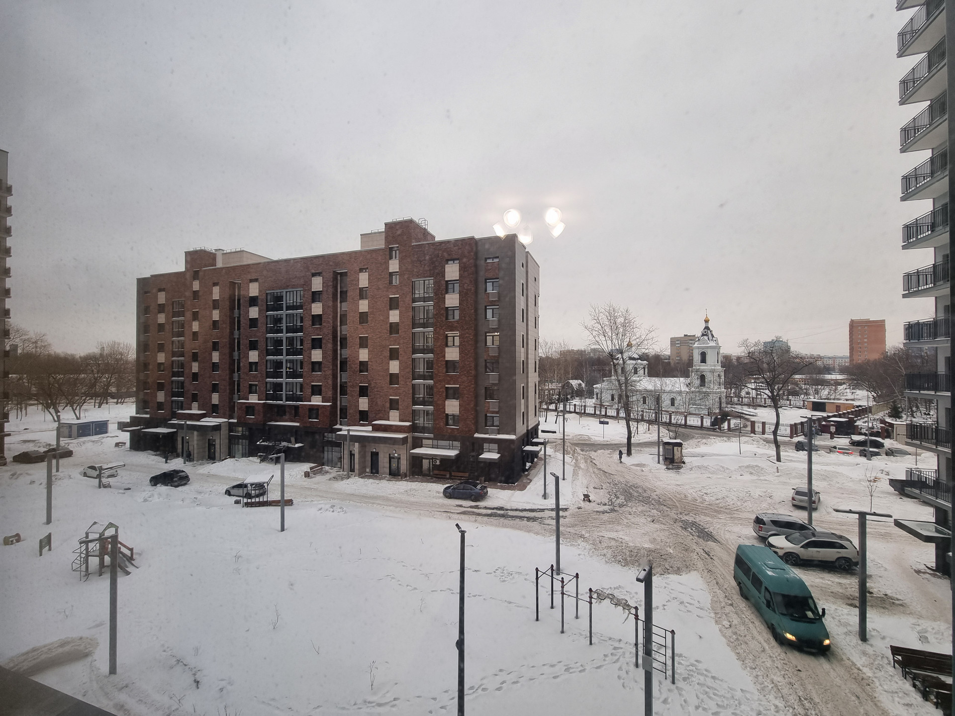 Вид из окна двор, улица