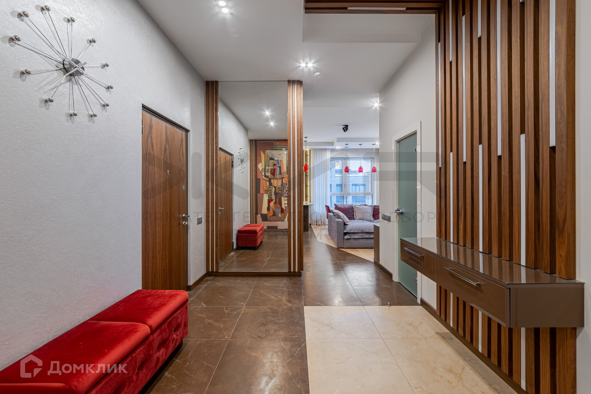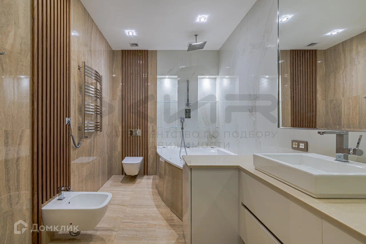 Квартира оснащена дизайнерской мебелью, встроенной бытовой техникой, акустикой dolby Digital Surround и системой кондиционирования.