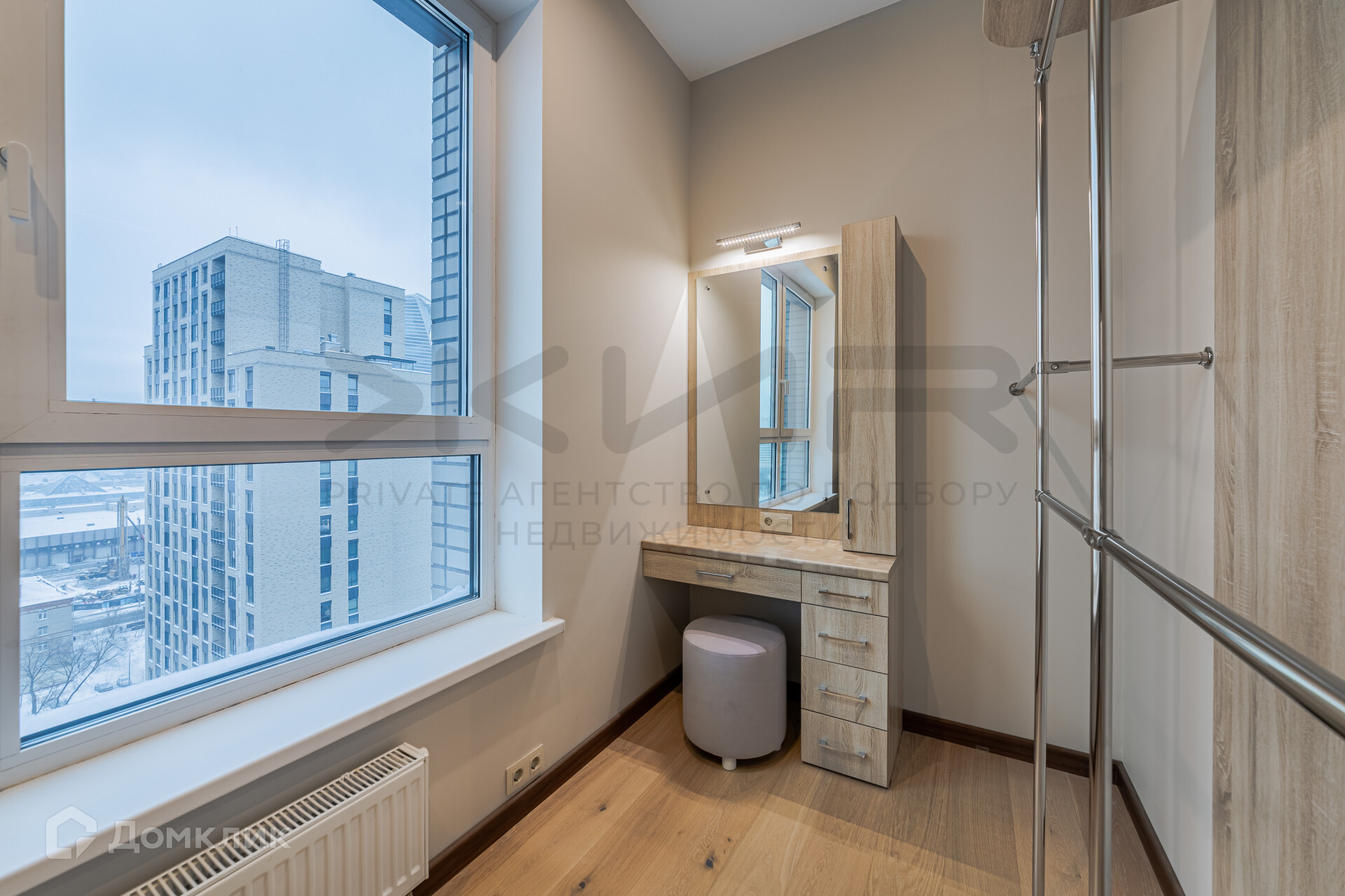 4. Гардеробная комната с выделенными зонами под кабинет и постирочную (2 окна).