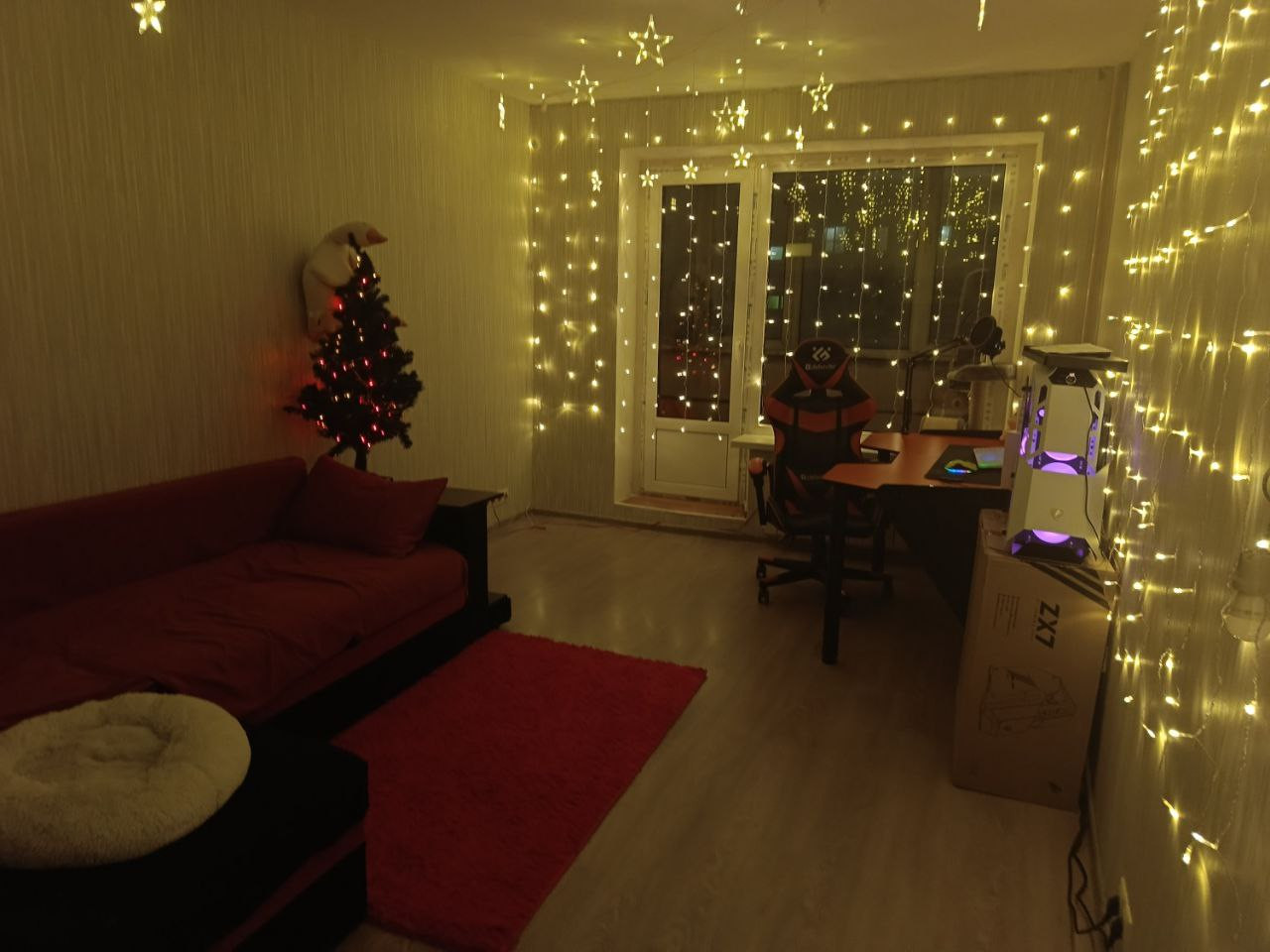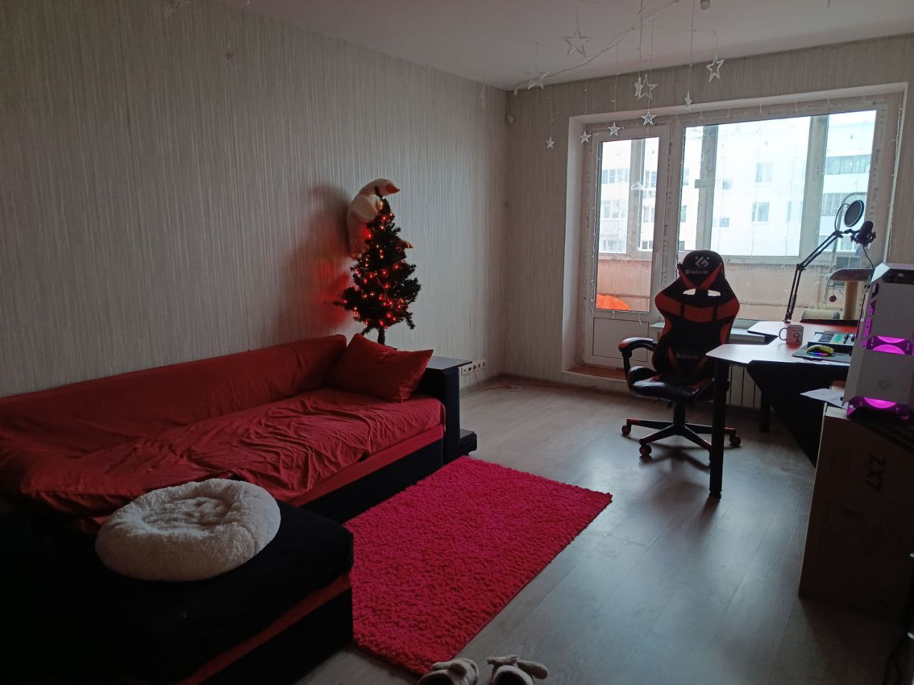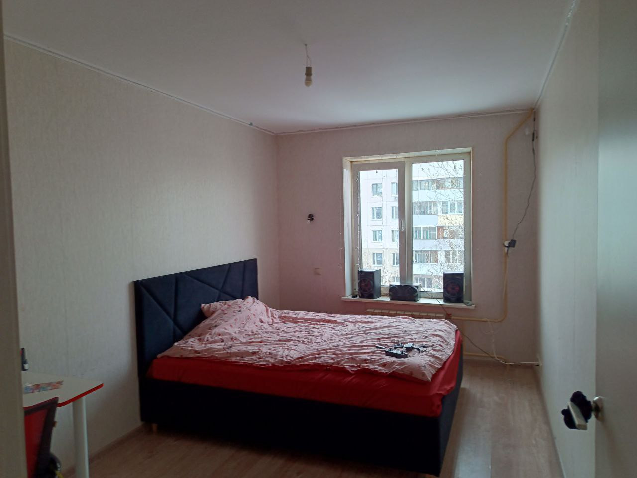 Балкон немного в поврежденном состоянии, требуется его ремонт (утепление и остекление) потому что на балконе нету одного окна, между балконом и комнатой стоит новое большое окно и дверь.