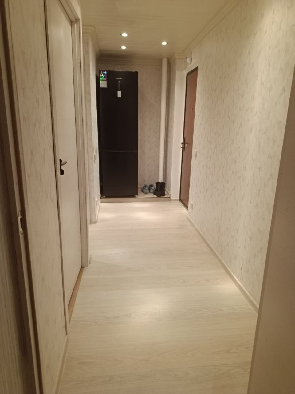 Так же в будущем можно устроить перепланировку, соединить кухню с маленькой комнатой и за счет коридора увеличить ванну и туалет.