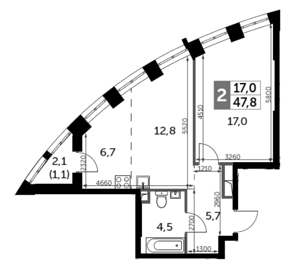 Общая площадь 47.8 м2