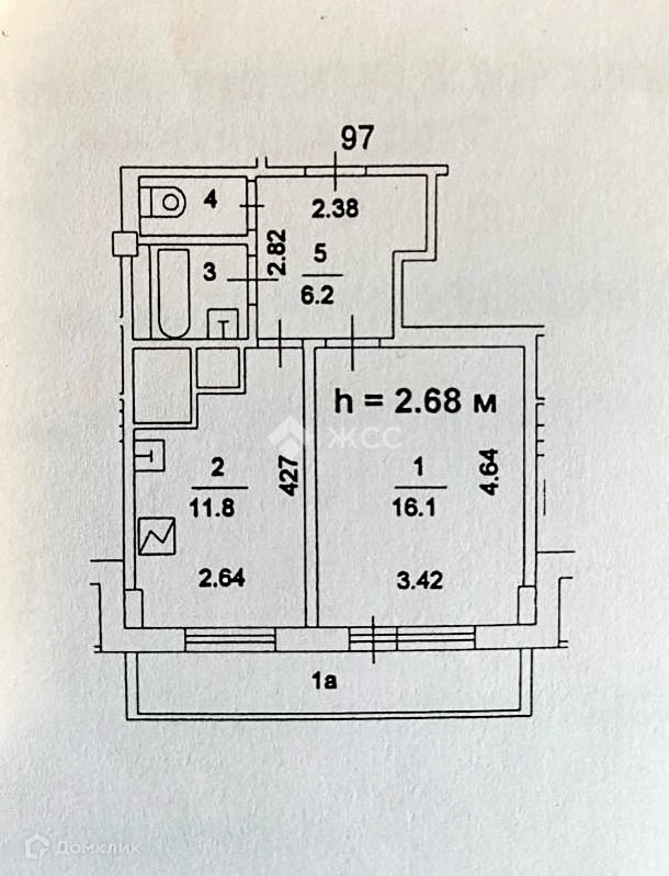 Общая площадь 42.2 м2
