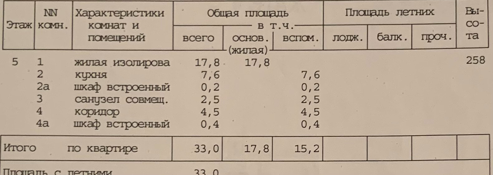 Общая площадь квартиры – 33.0 м2.