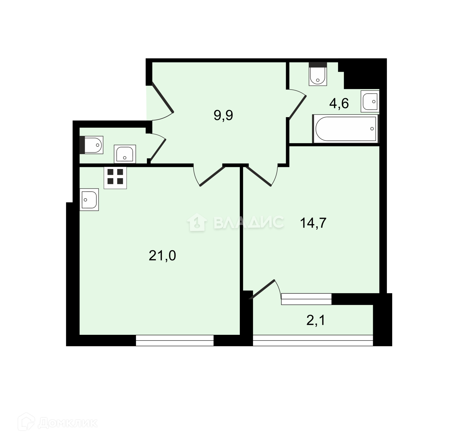 Общая площадь 51.9 м2