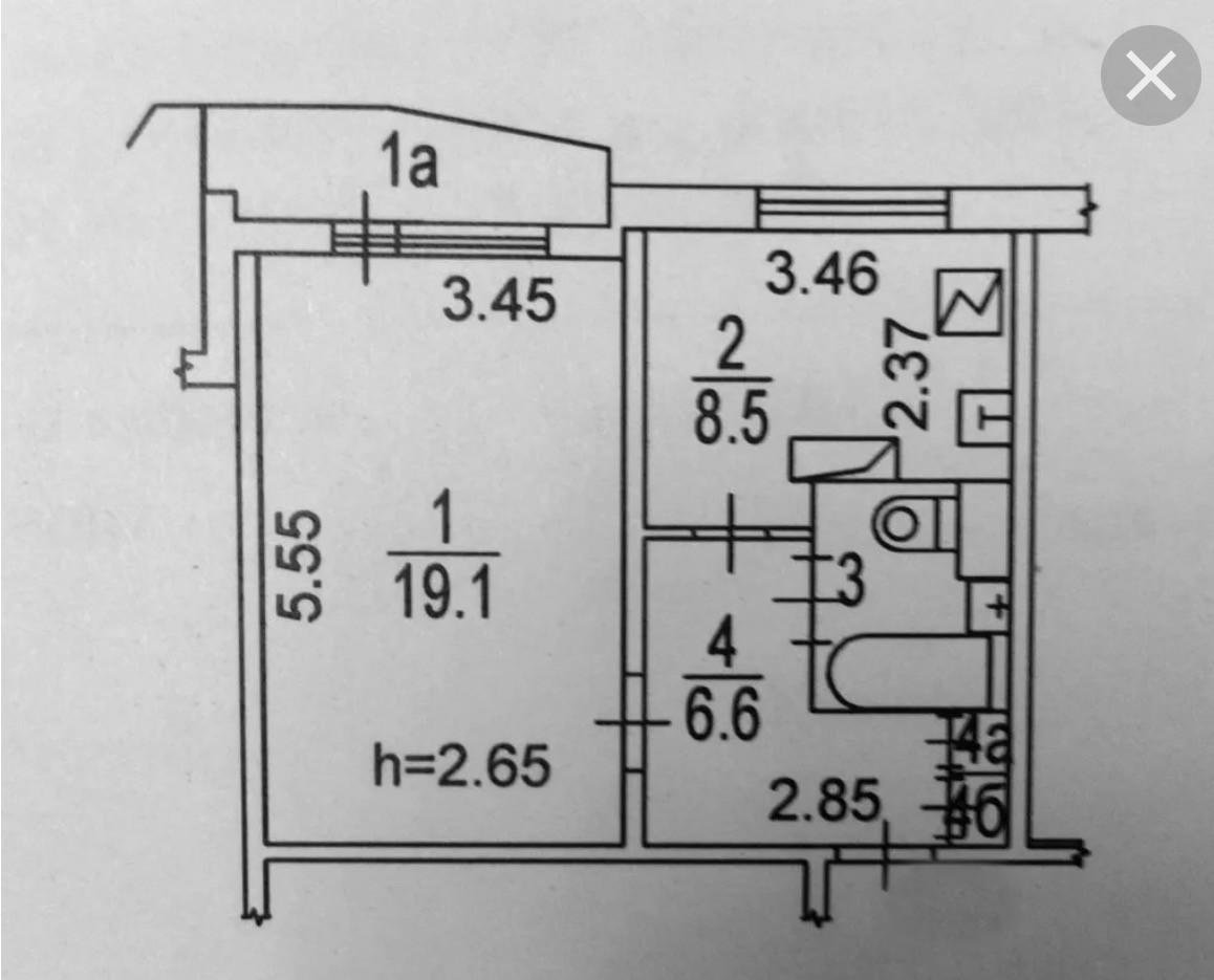 Общая площадь 37.8 м2