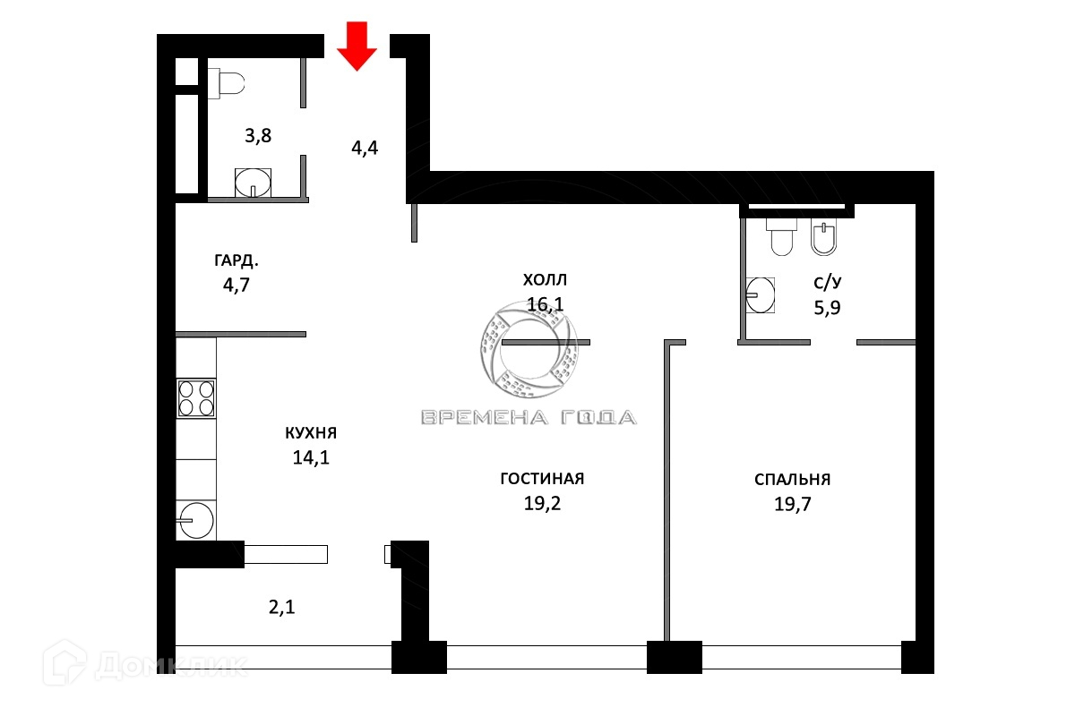 Общая площадь 90.4 м2