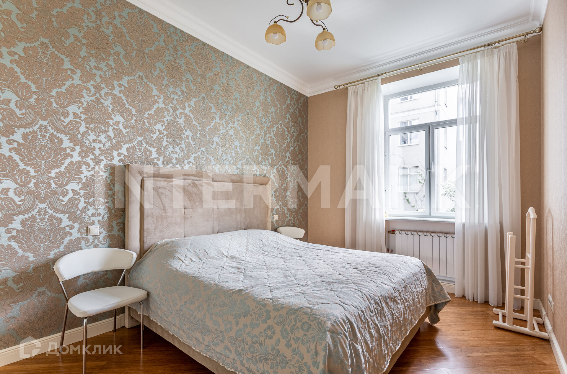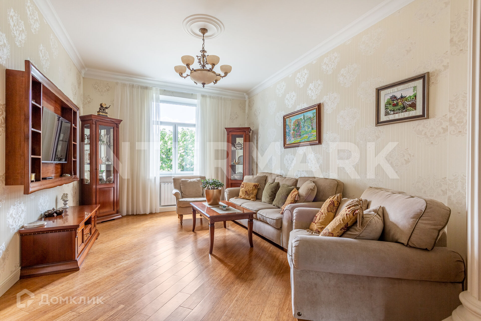 ID 64112. 4-комнатная квартира площадью 115 м2 в красивой историческом особняке в Пречистенском переулке: Планировка: гостиная, изолированная кухня, 3 спальни, 2 с/у. Выполнен ремонт в мягком классическом стиле. Окна квартиры смотрят в зеленый двор на пышные кроны деревьев.